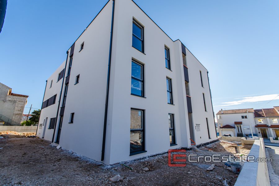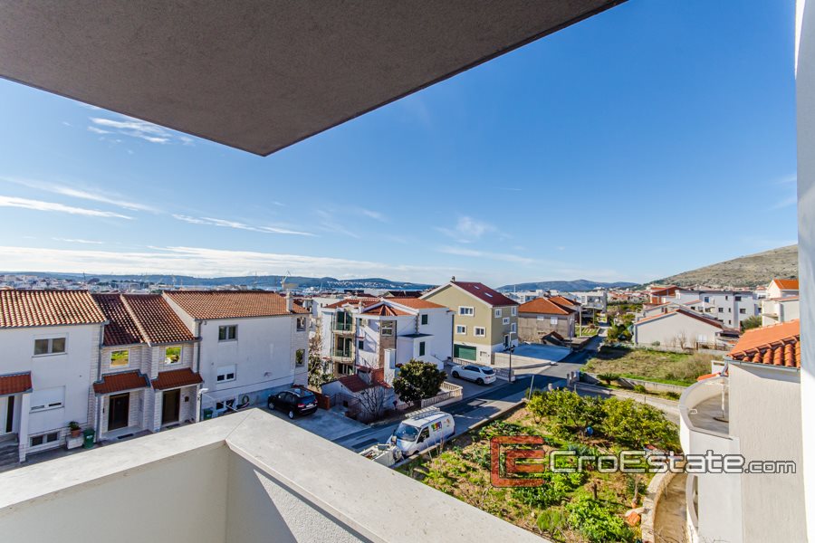 Appartamenti in vendita in un nuovo edificio nella città di Trogir. L'edificio è composto da due edifici, ciascuno con ingresso indipendente. L'edificio "A" è composto da tre piani, cioè su ogni piano c'è un grande appartamento con tre camere da letto. Anche l'edificio "B" è composto da tre piani e su ogni piano ci sono due appartamenti con due camere da letto, nell'edificio "B" sono disponibili altri quattro appartamenti. Costruzione e attrezzature di altissima qualità. Tutti gli appartamenti dispongono di un'infrastruttura completa, riscaldamento a pavimento, tapparelle elettriche e illuminazione a LED sul balcone. Orientamento sud-nord con balconi. Gli appartamenti al piano terra dispongono anche di giardino. Ogni appartamento dispone di un posto auto. Ottima posizione vicino alla stazione degli autobus, scuola, asilo nido, supermercato.