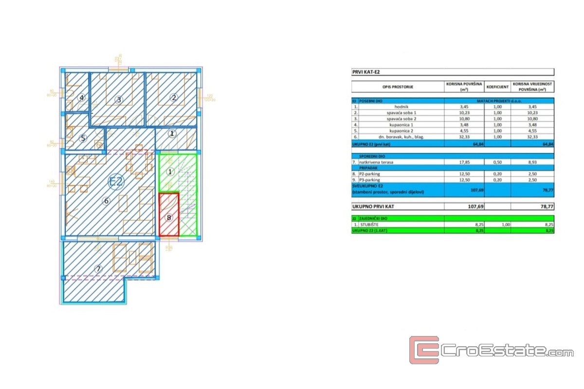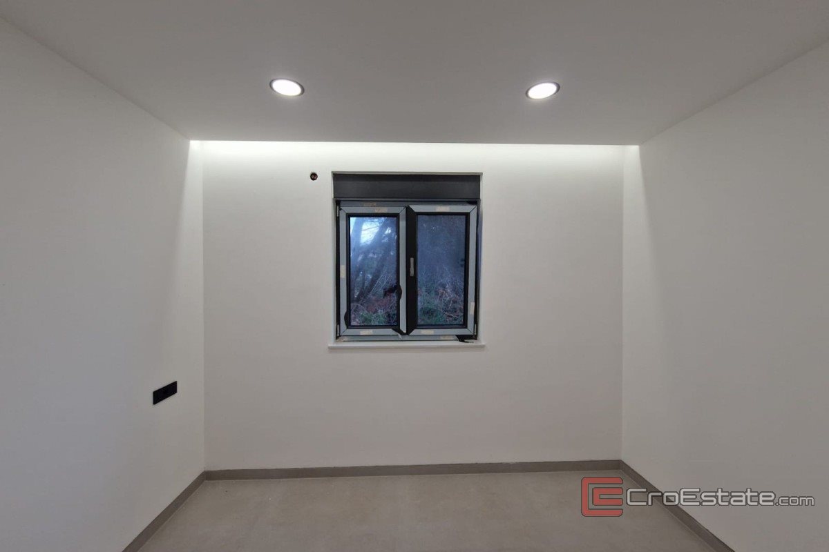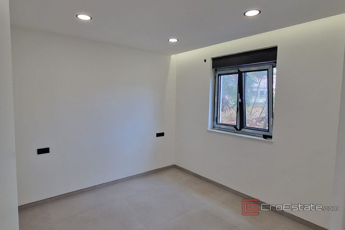 L'appartamento si trova al primo piano di un piccolo edificio residenziale con tre unità, situato in una tranquilla strada senza uscita nel centro di Vir, nelle immediate vicinanze della spiaggia principale di Jadro. L'orientamento a sud garantisce molta luce durante tutto il giorno, mentre la terrazza offre una vista sul mare e un piacevole soggiorno all'aperto. La disposizione degli ambienti comprende un corridoio, due camere da letto, una delle quali con bagno privato, un bagno aggiuntivo, una cucina collegata alla sala da pranzo e al soggiorno e un'ampia terrazza. L'appartamento dispone inoltre di un ripostiglio sottoscala predisposto per una lavatrice, nonché di due posti auto. Nella costruzione e nell'arredamento sono stati utilizzati materiali di alta qualità: dai vetri tripli agli infissi in alluminio, dalle piastrelle in ceramica di grande formato agli impianti sanitari di rinomati produttori. L'appartamento acquisisce un valore particolare grazie al moderno impianto di illuminazione, al riscaldamento a pavimento nei bagni e all'aria condizionata in tutte le stanze.