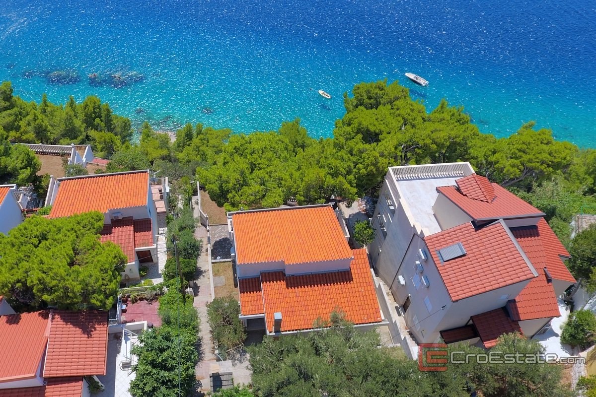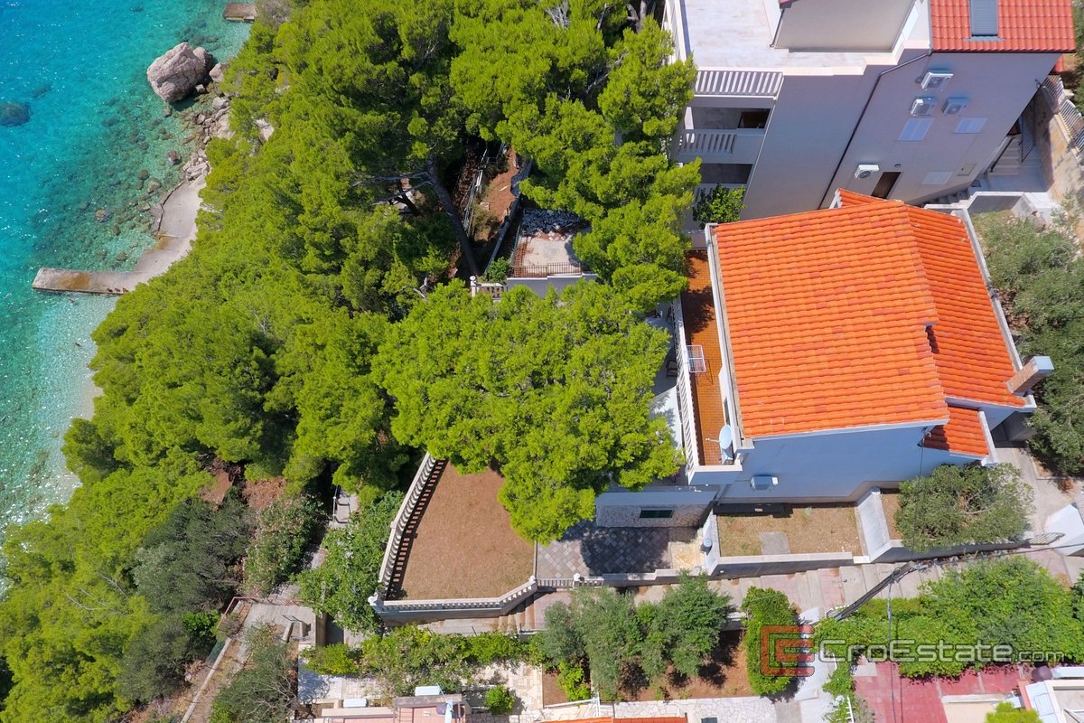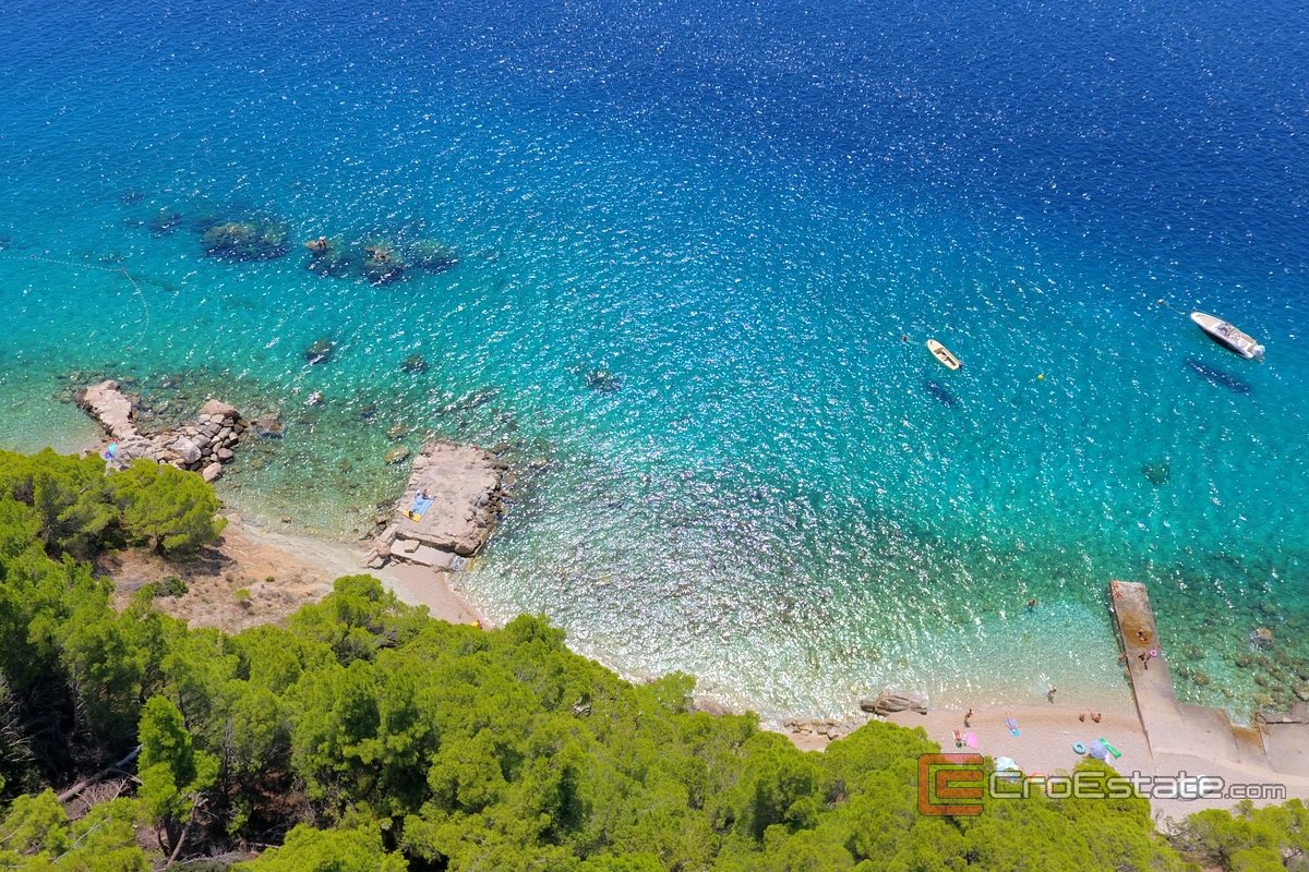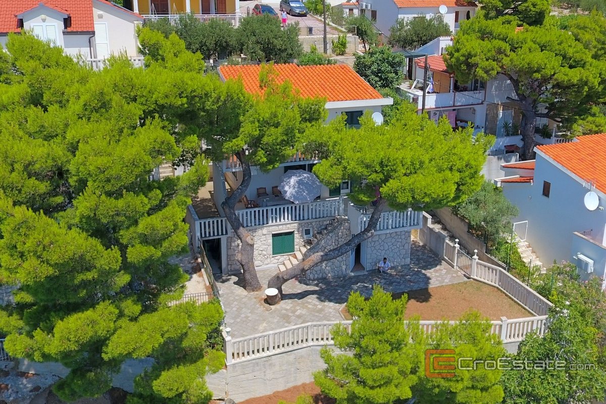 Fantastická středomořská atmosféra, otevřený výhled na moře a nedaleké ostrovy, velké borovice v okolí, které v letních měsících vytvářejí přirozený stín, vyvýšená poloha nad pláží se schůdky vedoucími přímo k ní, kde se nachází kotviště lodí výhody této okouzlující nemovitosti.