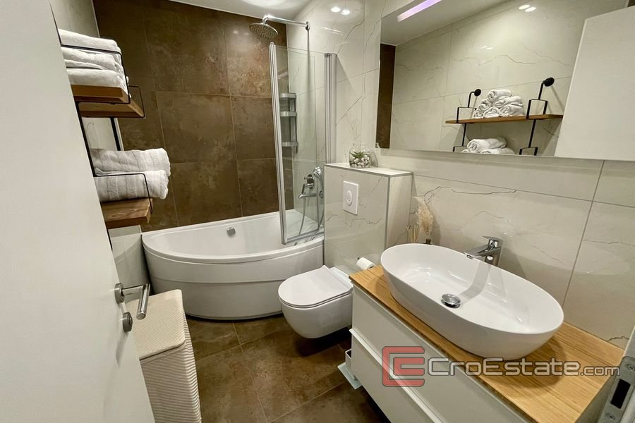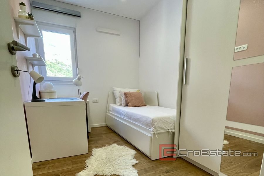 Роскошно меблированная трехкомнатная квартира с видом на море. Расположена на третьем этаже жилого дома недалеко от центра Макарски, южная ориентация.