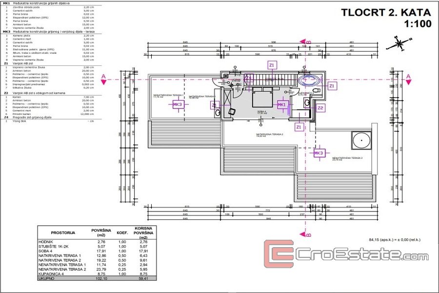 - На втором этаже находится главная спальня с ванной комнатой, окруженная большими крытой и открытой террасами с фантастическим панорамным видом.
