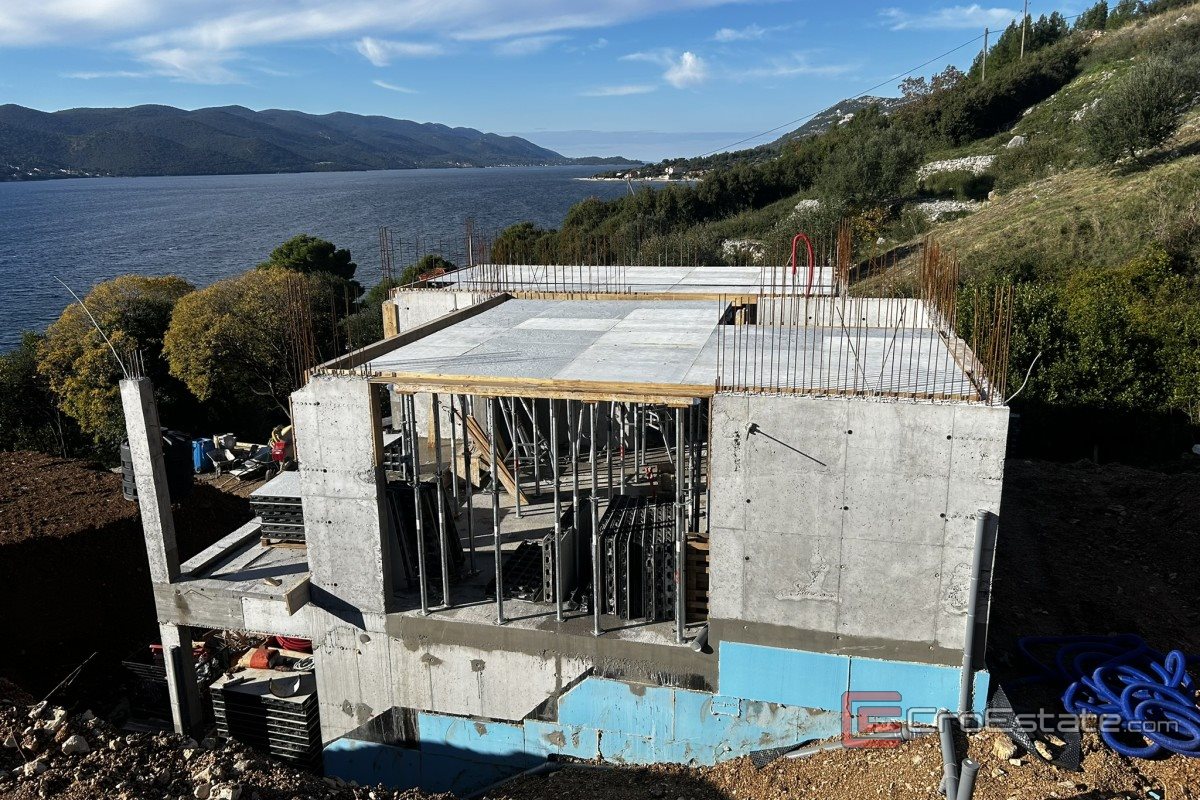 На первом этаже находится просторная, светлая гостиная, соединенная с современной кухней, а также одна спальня с собственной ванной комнатой и гардеробной. Большие стеклянные стены открывают вид на море и старый город Корчула, делая это пространство по-настоящему особенным. На втором этаже есть две дополнительные спальни, каждая с собственной ванной комнатой и гардеробной, расположенные в функциональной и эстетически гармоничной планировке.