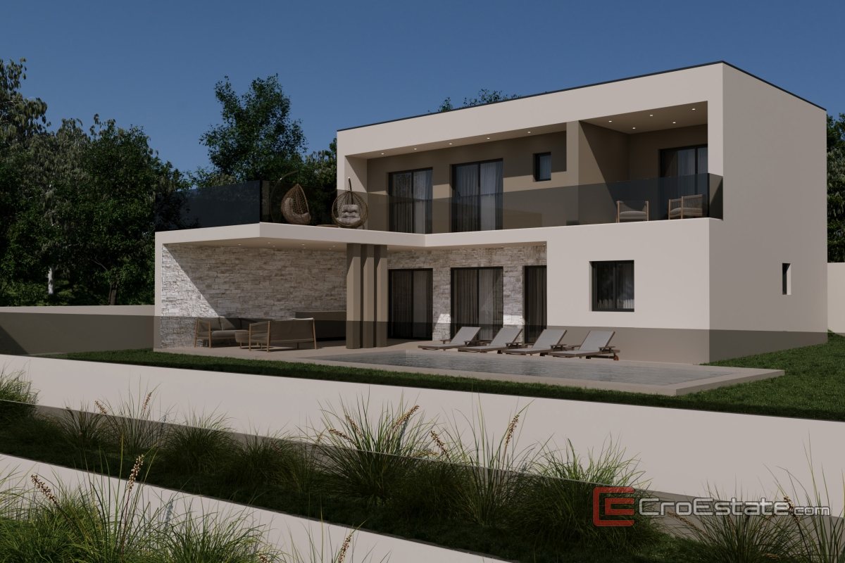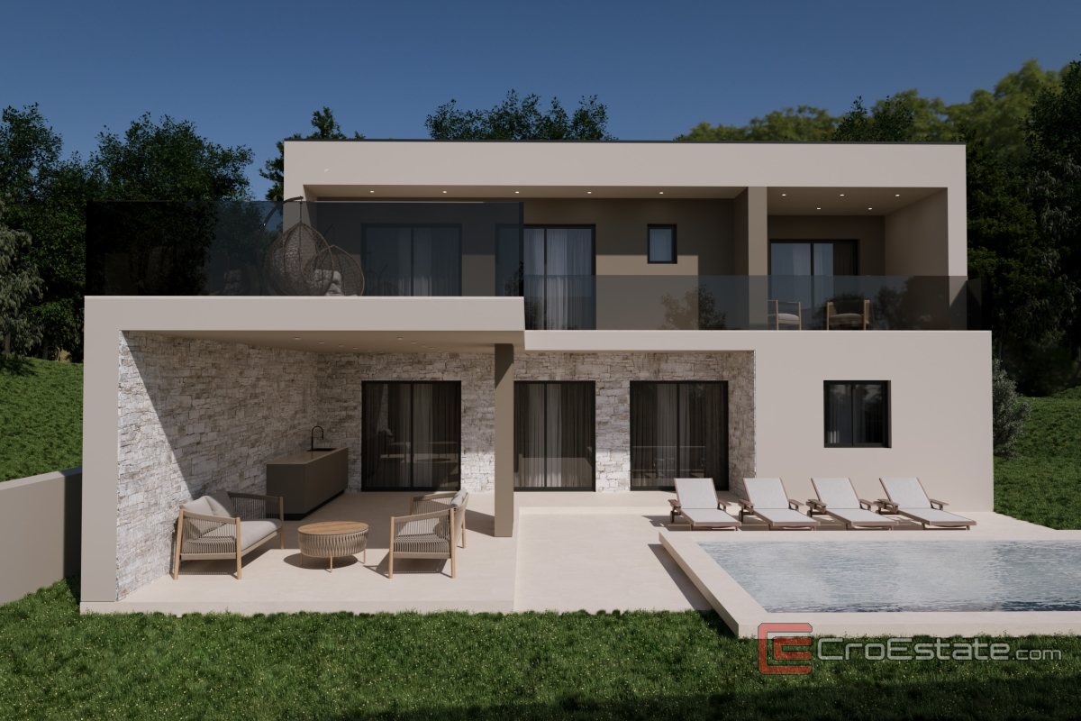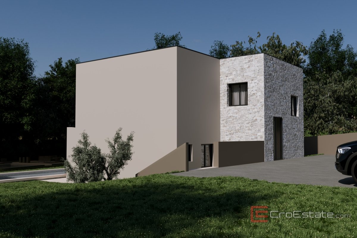 В привлекательном и тихом месте недалеко от деревни Ровинь расположена эта современная вилла, предлагающая высокий уровень приватности, функциональности и комфорта. Вилла расположена на участке площадью 640 м², а жилая площадь составляет 250 м², тщательно спланированная с учетом требований современного образа жизни.