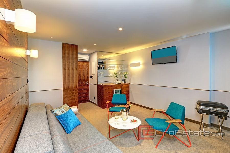 Есть восемь роскошных юнитов со стойкой регистрации, принцип отеля с разницей в размере каждого юнита и с разницей в ориентации юнита, т.е. видом на город и море.