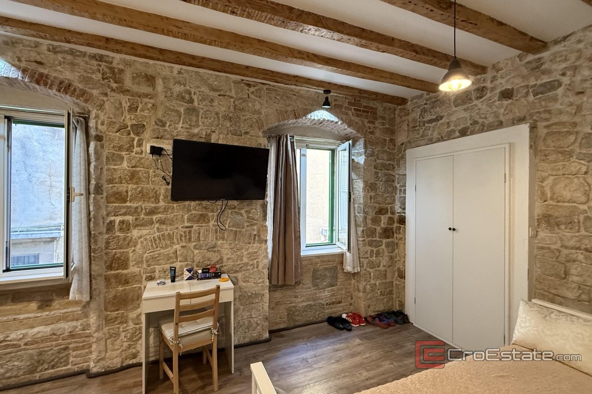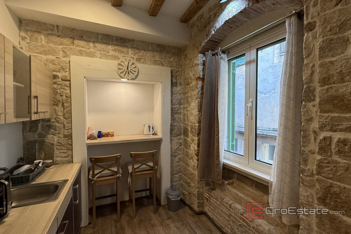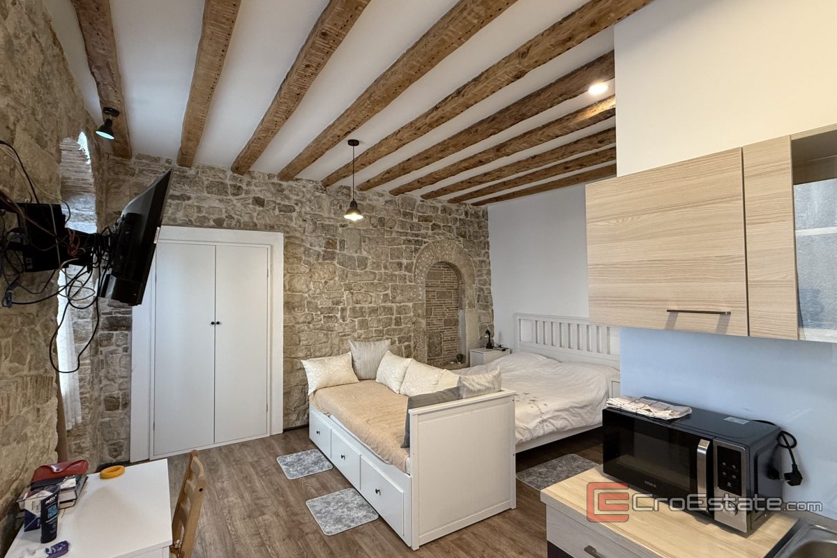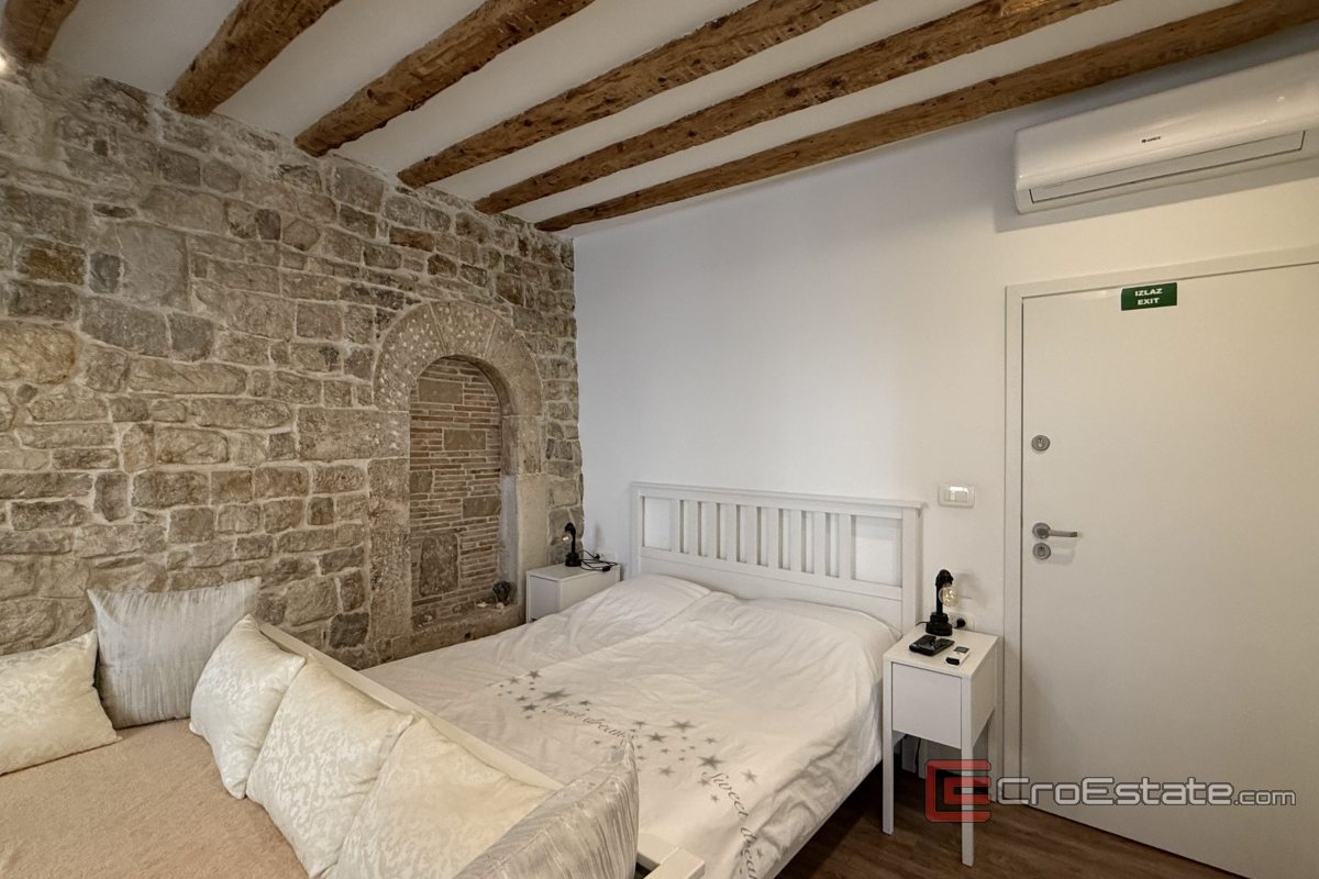Две красивые квартиры, расположенные в самом центре города. Общая площадь квартир составляет около 54 м2, и каждая разделена на около 28 м2 и 26 м2. Недвижимость расположена на втором этаже здания и выходит на восточную сторону, что обеспечивает прекрасный вид на исторические улицы города Сплит. Оба блока были соединены, и есть возможность объединить блоки и получить большую квартиру.