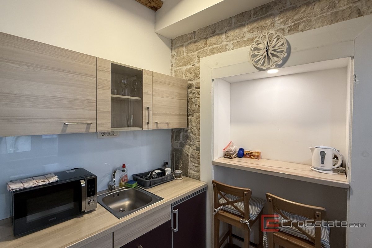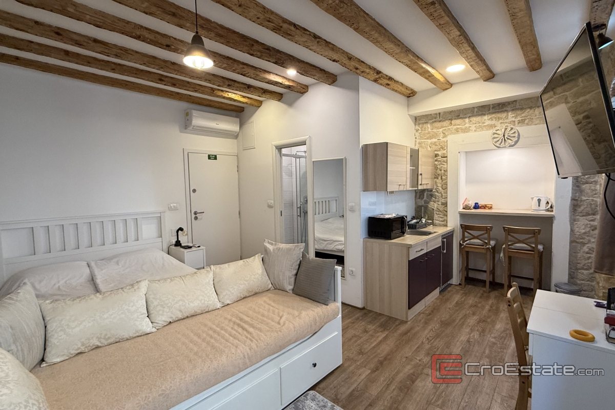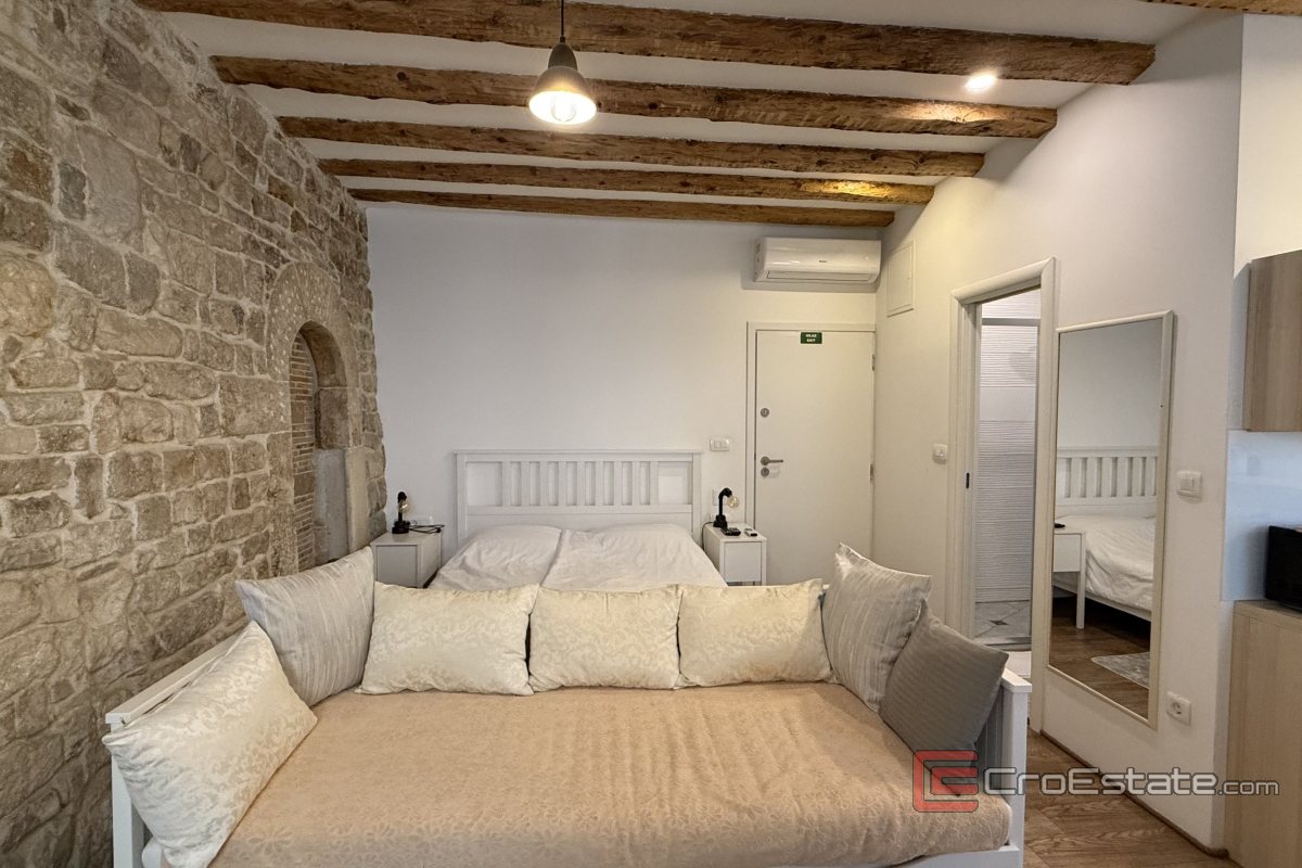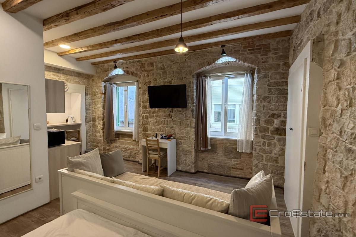 Две красивые квартиры, расположенные в самом центре города. Общая площадь квартир составляет около 54 м2, и каждая разделена на около 28 м2 и 26 м2. Недвижимость расположена на втором этаже здания и выходит на восточную сторону, что обеспечивает прекрасный вид на исторические улицы города Сплит. Оба блока были соединены, и есть возможность объединить блоки и получить большую квартиру.