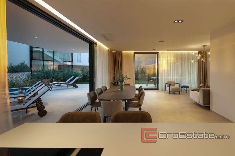 Вилла расположена всего в 20 м от моря и пляжа, для нее характерны современные линии и роскошная внутренняя и внешняя отделка.