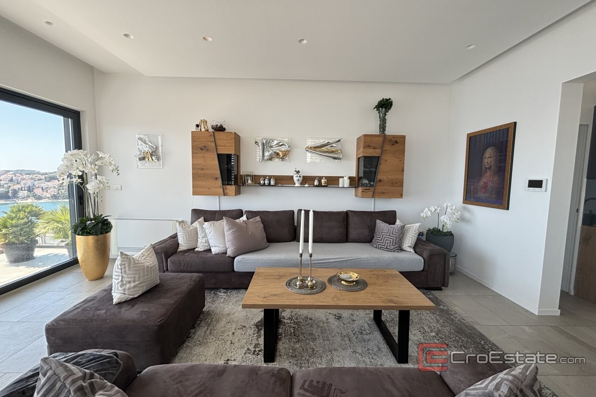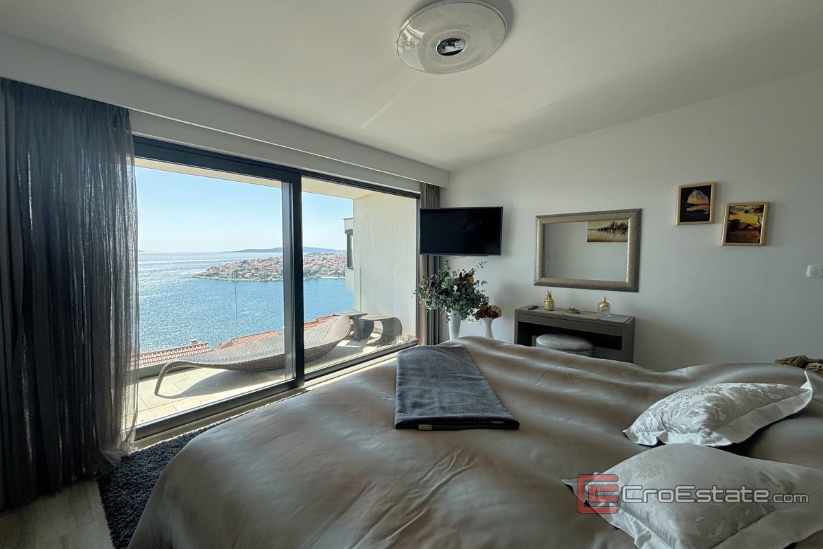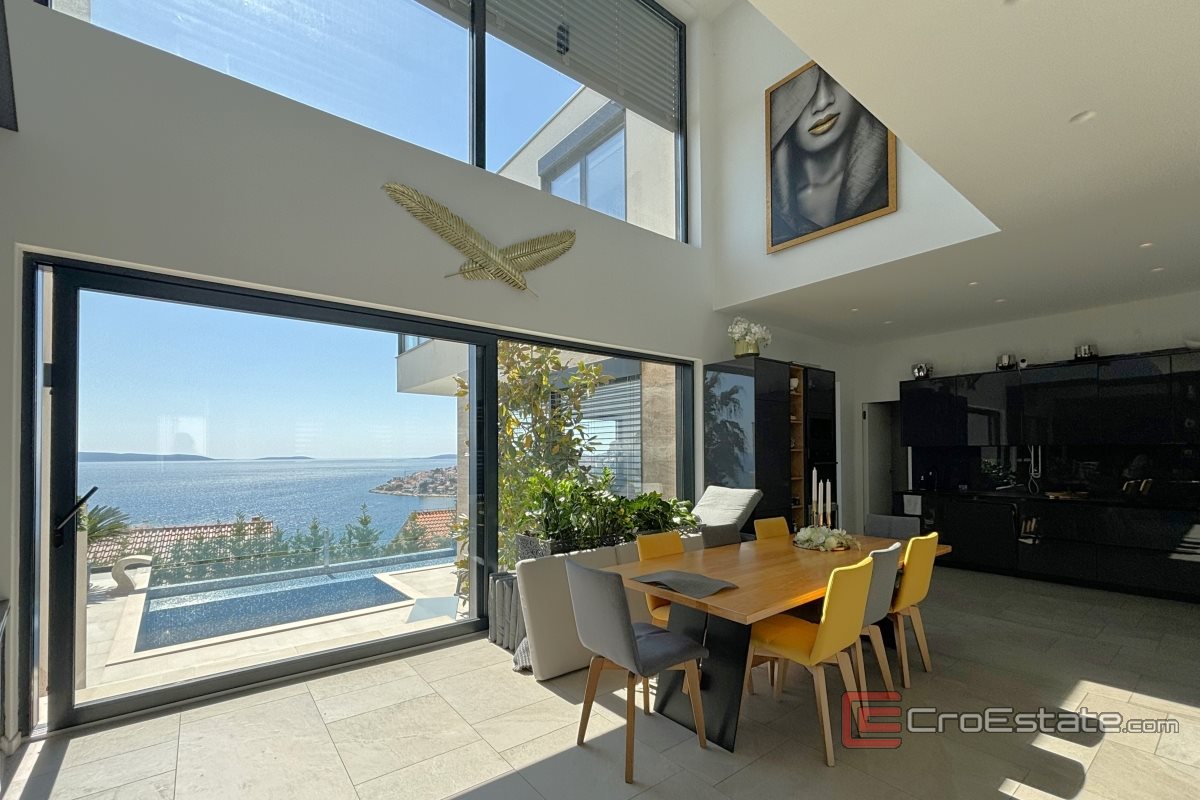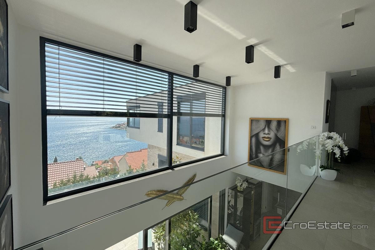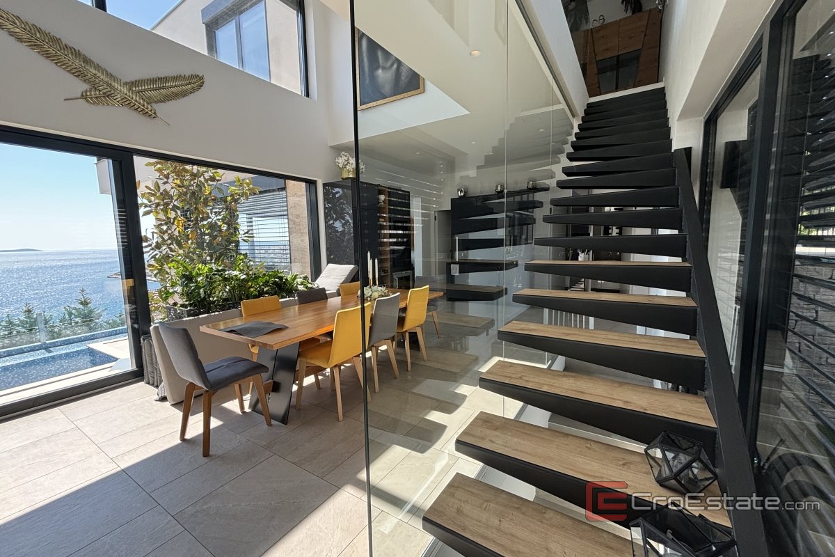 Jedinstvena vila na otoku Čiovu, južne orijentacije s pogledom na more, na prodaju. Projektirana je kako bi se iz svake prostorije pružao panoramski pogled na more, a prozračnost cijele vile postignuta je staklenim stijenkama i ogradama.