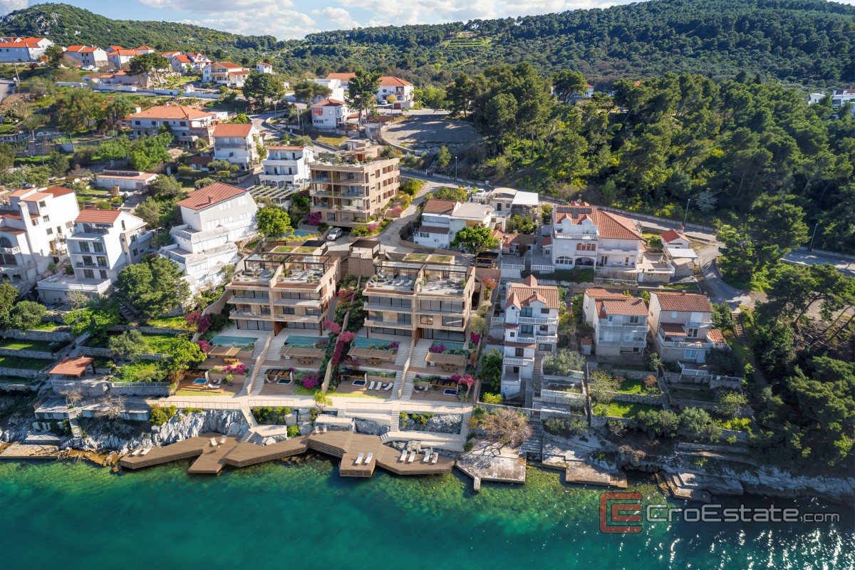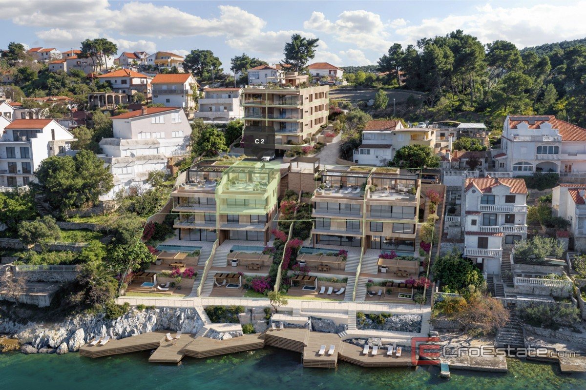 Vrhunsku lokaciju karakterizira udaljenost zračne luke od svega 13 km, blizina svih sadržaja na otoku te grada Trogira i Splita. Neposredna blizina mora, kristalno čisto more i okolna priroda čine ovu lokaciju idealnim mjestom za opuštanje tijekom cijele godine. S obzirom na brojne terase, vrtove i sadržaje, stan je odličan izbor za sve one koji traže nekretninu na vrhunskoj lokaciji i to u prvom redu do mora.