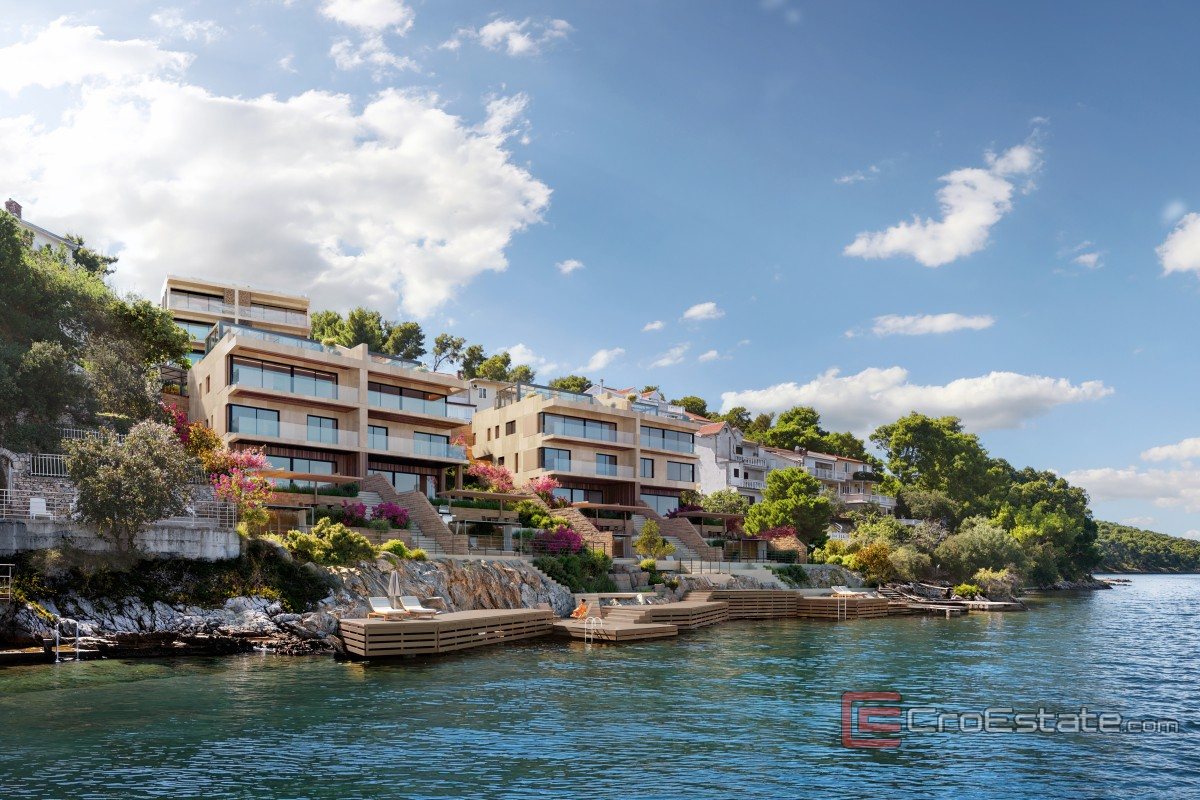 U ponudi je luksuzan penthouse stan s krovnom terasom u prvom redu do mora na izvrsnoj lokaciji u Okrugu Donjem. Smješten odmah pored mora, s predivnim pogledom i direktnim pristupom do mora, orijentiran na sjever, jug i zapad, savršeno se uklapa u mediteranski okoliš. Stan je smješten u stambenoj zgradi sa sveukupno četiri stana, a pristup mu je osiguran sa sjeverne strane. Stan nije samo dio kompleksa luksuznih apartmana već sveobuhvatno osmišljen prostor za život, odmor i opuštanje.