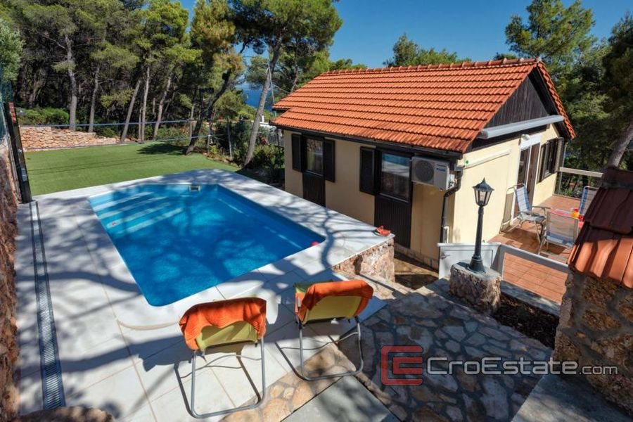 Smještena u borovoj šumi, južne orijentacije s pogledom na more, nekretninu karakterizira prirodni ambijent koji će pravog kupca oduševiti na prvi pogled.