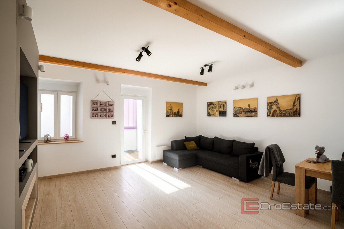 Gornje etaže rezervirane su za poseban dvoetažni stan, osmišljen za one koji cijene razinu više privatnosti i osjećaj ekskluzivnosti. Donji dio stana nudi dnevni prostor s kuhinjom, kupaonicom i balkonom, dok su na gornjoj razini smještene dvije spavaće sobe i dodatna kupaonica, stvarajući savršeno zaokruženu cjelinu za obiteljski boravak ili luksuzni najam.