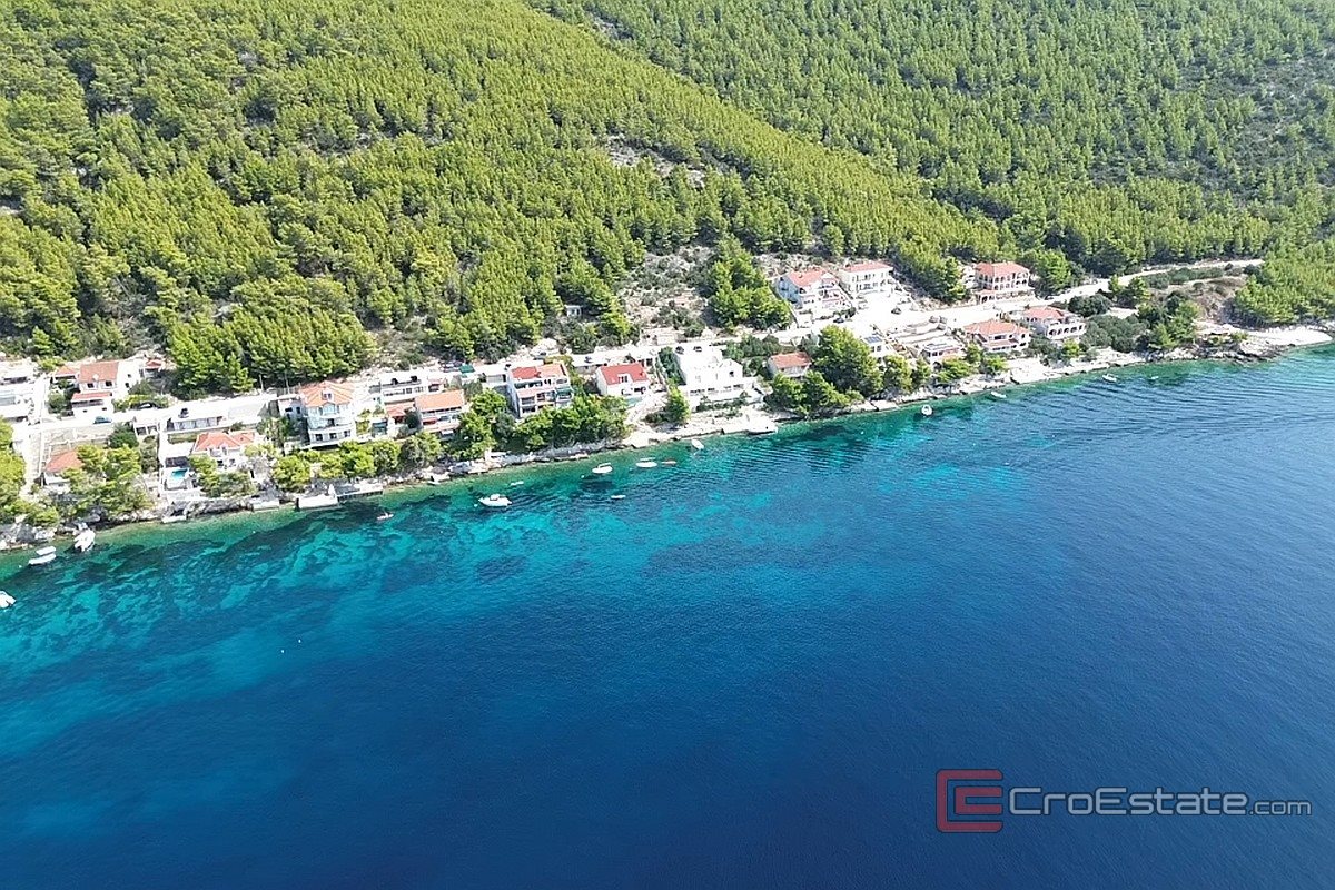 Otkrijte rijetku priliku za kupnju građevinskog zemljišta na samo 20 metara od mora, s nevjerojatnim panoramskim pogledom na tirkizno more i slikovite otoke. Ovo je savršena lokacija za izgradnju moderne vile s bazenom ili apartmanskog kompleksa za odmor iz snova.