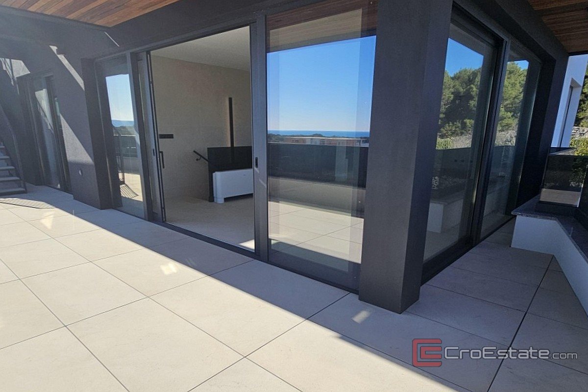 U gradu Krku prodaje se luksuzan penthouse apartman smješten na drugom katu višeobiteljske zgrade s četiri stambene jedinice. Ukupna stambena površina iznosi 162 m², a obuhvaća ulazni hodnik, tri spavaće sobe, tri kupaonice, ostavu, kuhinju s blagovaonicom i dnevnim boravkom te prostranu terasu površine 44 m² s pogledom na more. Apartmanu pripada krovna terasa od 62 m² s bazenom površine 21 m², dva parkirna mjesta te spremište u podrumu objekta. Nekretnina se odlikuje visokom kvalitetom gradnje i opreme, uz mogućnost izbora završnih materijala. Predviđeni su podno grijanje putem toplinske pumpe, aluminijska stolarija te klimatizacija svih prostorija. Lokacija je mirna, na udaljenosti od približno 600 m od mora i 800 m od centra grada.