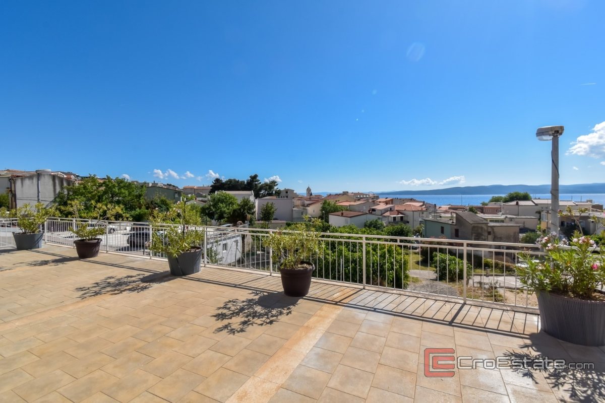 Na suterenu se nalazi nekoliko vanjskih parking mjesta (od kojih je jedno parking mjesto natkriveno). U prizemlju se nalazi niz poslovnih prostora koji se mogu prenamijeniti u garažna mjesta, prostoriju za odmor i sl. ili se mogu koristiti za poslovne svrhe (iznajmljivanje poslovnih prostora). Nalaze se i dvije kupaonice. Nad prizemljem se nalazi velika prostrana terasa s pogledom na more koja se može prenamijeniti u ugostiteljske svrhe.