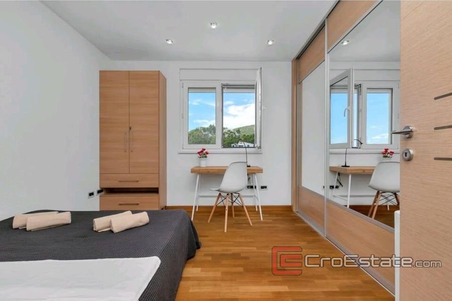 U cijenu stana ulazi kompletan namještaj, modernog dizajna od punog drveta i bračkog kamena. Stan posjeduje toplinsku pumpu Fujitsu, dok u kupaonicama i kuhinji nalazi podno grijanje. Čitav apartman je automatiziran na daljinski ili laptopom. Od dodatnih sadržaja ima jacuzzi na terasi i solare na za vodu.