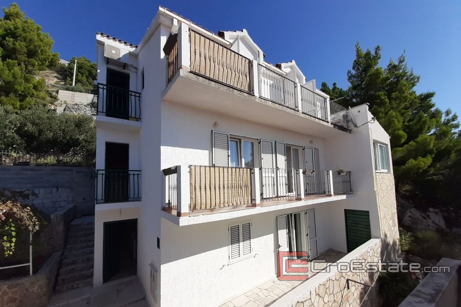 Apartmanska kuća s pogledom na more smještena u drugom redu uz more na Omiškoj rivijeri.