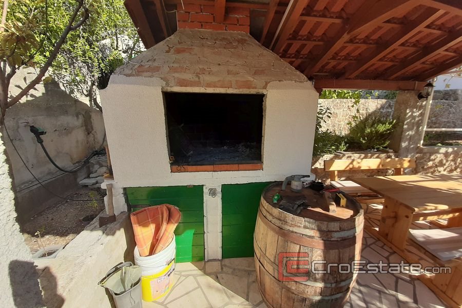 Na kultiviranoj okućnici je smještena vanjska terasa sa kaminom i prostorom za druženje.