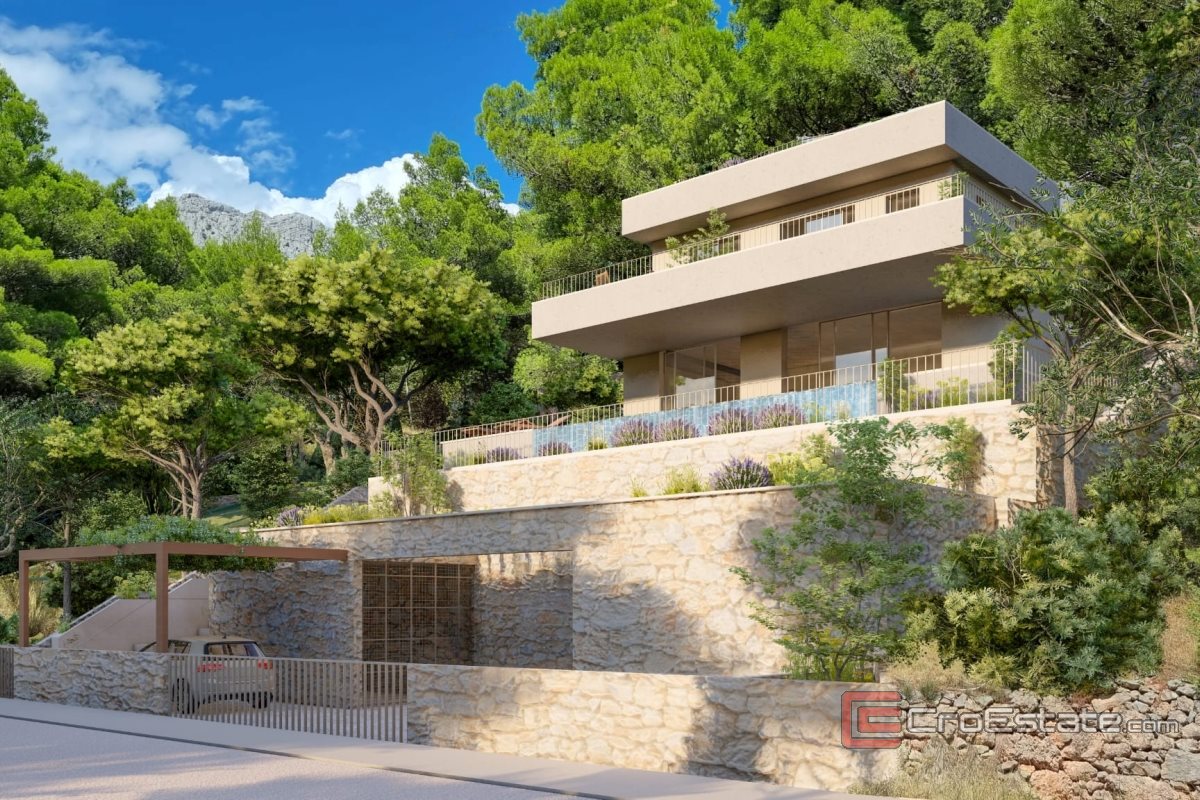 Prodaje se građevinski teren s površinom od 941 m2 i pravomoćnom građevinskom dozvolom za dvoetažnu villu s bazenom i ukupnom bruto površinom od 270 m2, a nalazi se nedaleko od Omiša, na mirnoj lokaciji s pogledom na more.