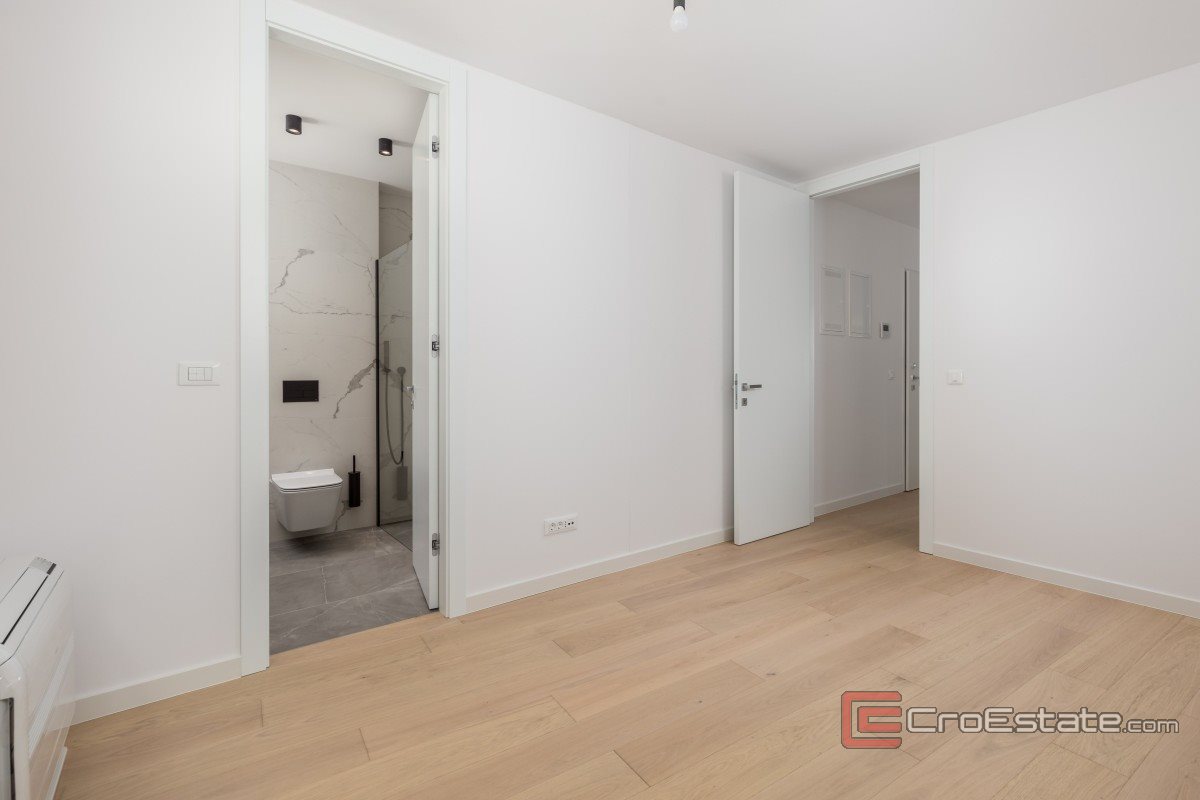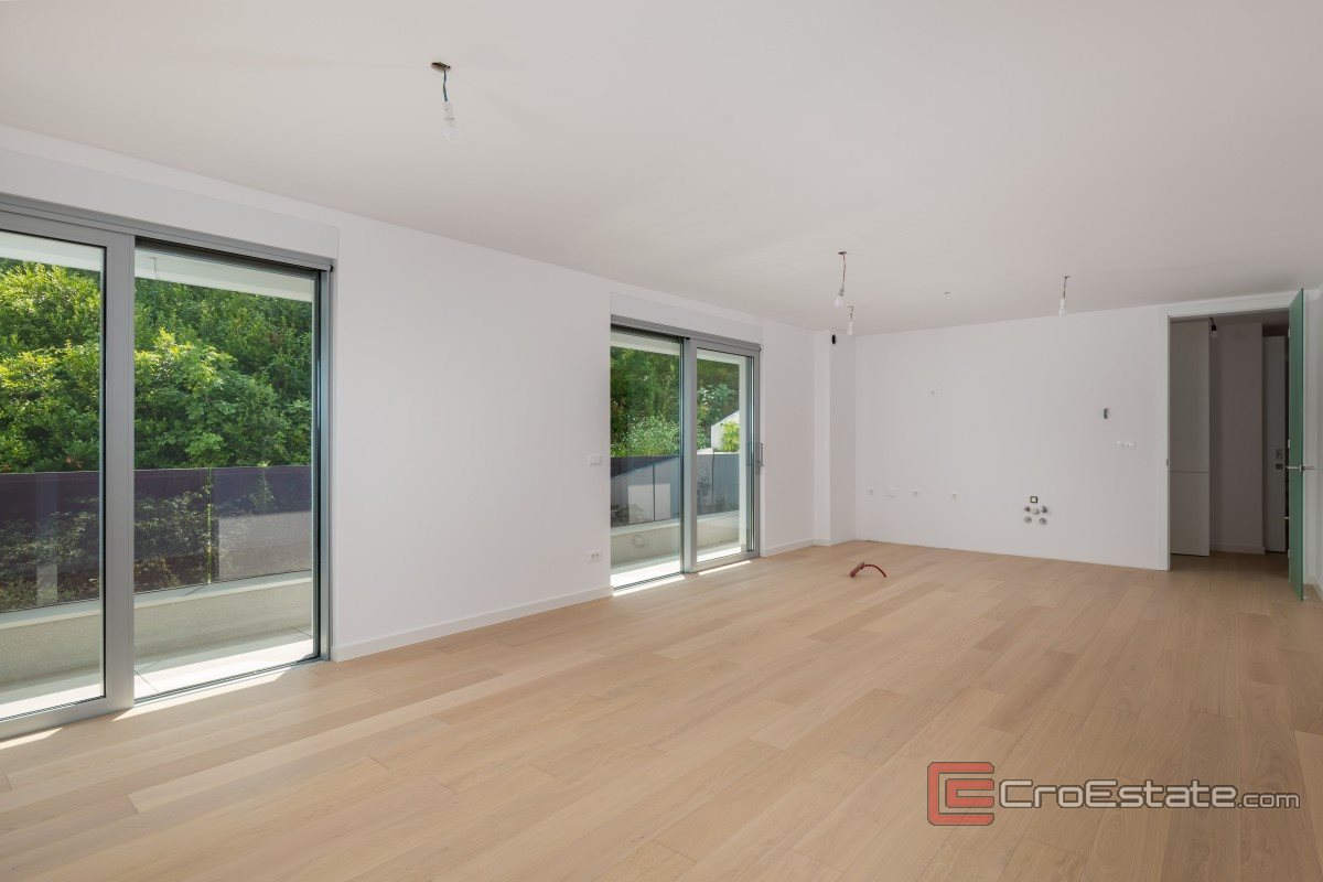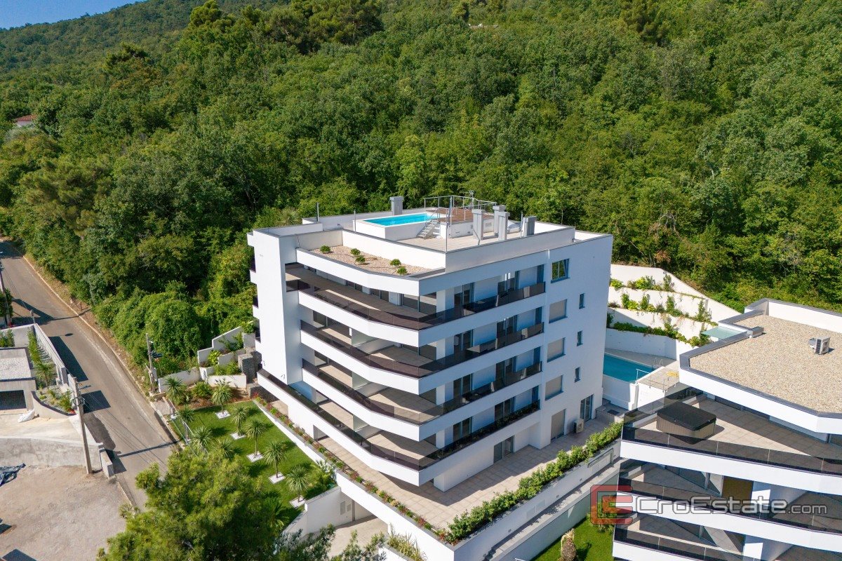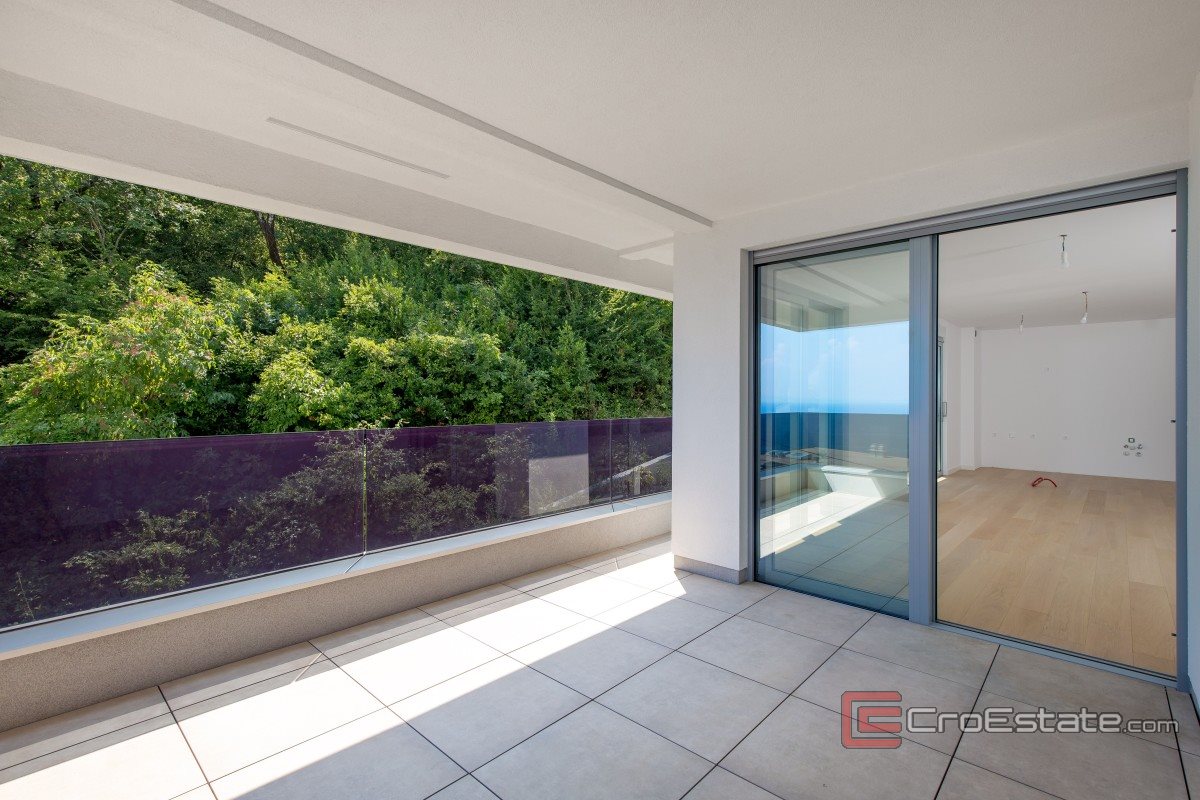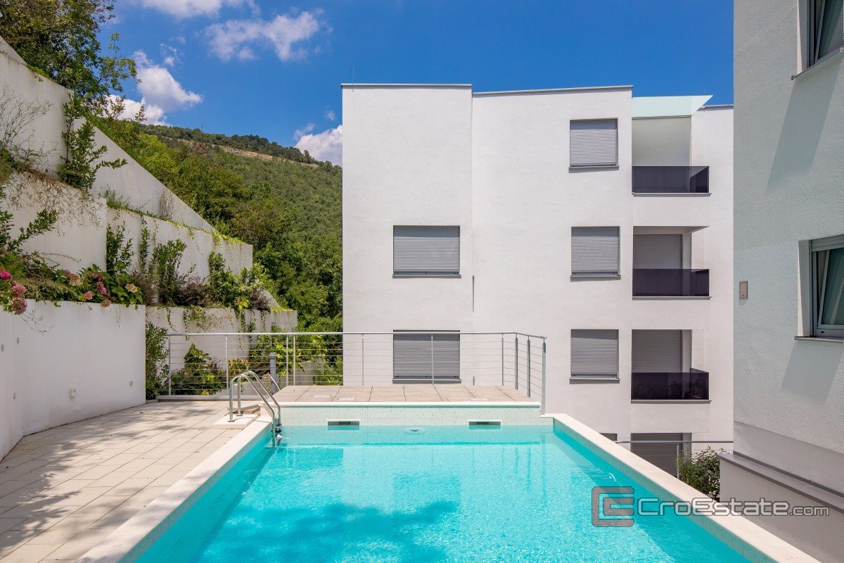 Prodaje se moderan stan površine 81m2 u novogradnji na mirnoj lokaciji u Opatiji. Smješten je na drugom katu zgrade s liftom i zajedničkim bazenom. Stan ima funkcionalan raspored s dvije spavaće sobe, dvije kupaonice, dodatnim toaletom i otvorenim prostorom kuhinje, blagovaonice i dnevnog boravka. Pripada mu balkon površine 20m2, dva garažna parkirna mjesta i spremište. Opremljen je suvremenim sustavom grijanja i hlađenja, kvalitetnom stolarijom i sigurnosnim vratima. Nekretnina nudi visoku razinu komfora i praktičnost za svakodnevni život.