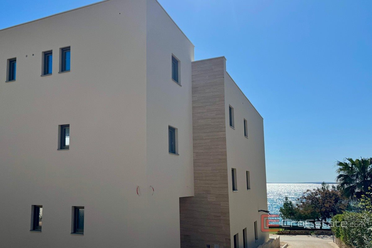 Na atraktivnoj lokaciji tik uz more, u prvom redu, nalazi se moderan dvosoban stan u novogradnji. Smješten u prizemlju zgrade, stan ima ukupnu stambenu površinu od 65 m². Raspored uključuje dvije spavaće sobe, kupaonicu te prostrani otvoreni dnevni prostor koji objedinjuje kuhinju, blagovaonicu i dnevni boravak.