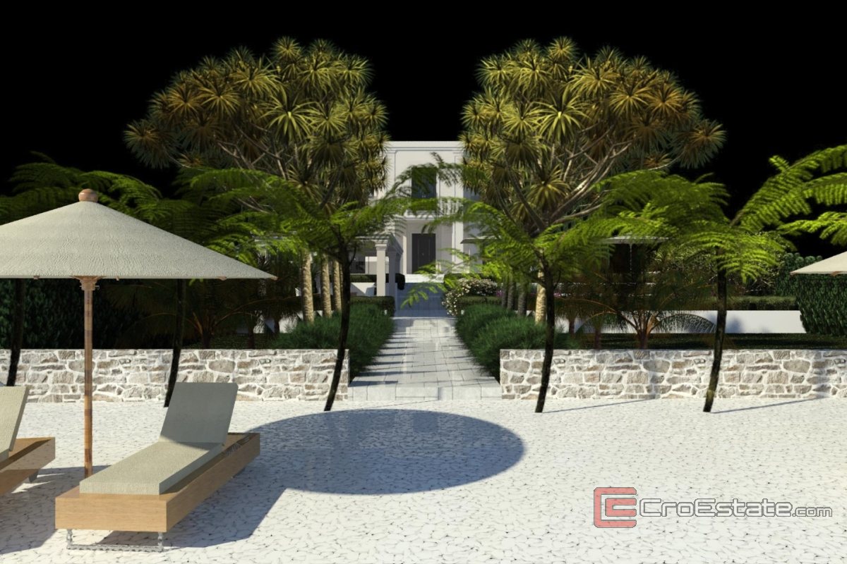 Zemljište obuhvaća ukupnu površinu od 1150 m2 dok gradivni dio površine iznosi 600 m2. Gradivni se dio zemljišta nalazi na uzvišenju što omogućava neometan i otvoren pogled te direktan pristup moru. Negradiva površina, uz samu obalu, se može prenamijeniti u prekrasno uređeno dvorište s direktnim pristupom plaži.