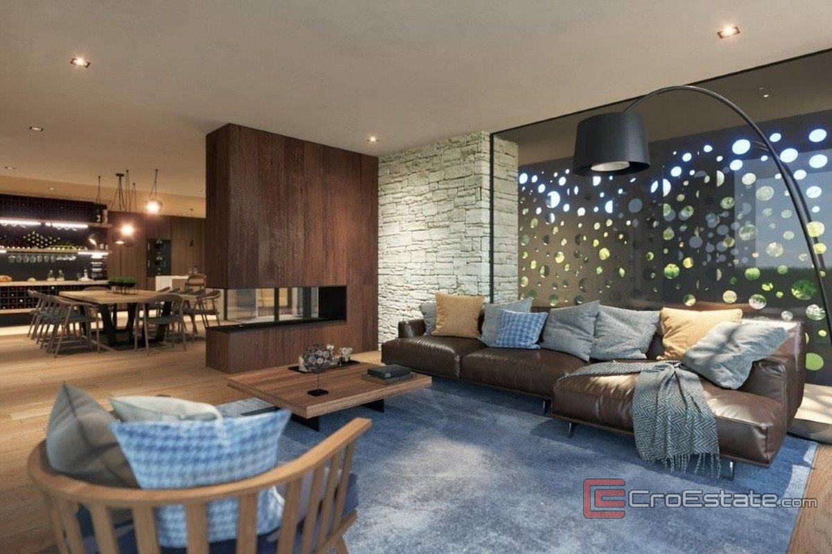 Parcela površine 1600 m² uključuje natkriveni parking sa spremištem od 60 m² i prostor za roštilj od 42 m² s WC-om. Objekt ima podno grijanje putem toplinske pumpe te klima uređaje za hlađenje.