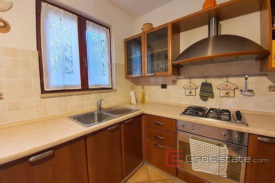 Nekretnina se prodaje namještena. Centralno grijanje je na lož ulje i klimu te mogućnost grijanja na kamin i mogućnost gradnje bazena na parceli.