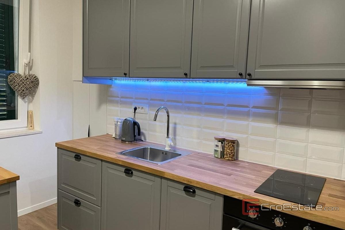 Prodaje se stan ukupne površine 80 m², pažljivo preuređen u dvije zasebne dvosobne stambene jedinice koje se trenutno uspješno iznajmljuju turistima. Smješten je u visokom prizemlju, a zahvaljujući pov-išenoj poziciji na terenu ostavlja dojam kao da se nalazi na prvom katu, što pruža dodatnu privatnost i osjećaj ugodnog izdignutog boravka.