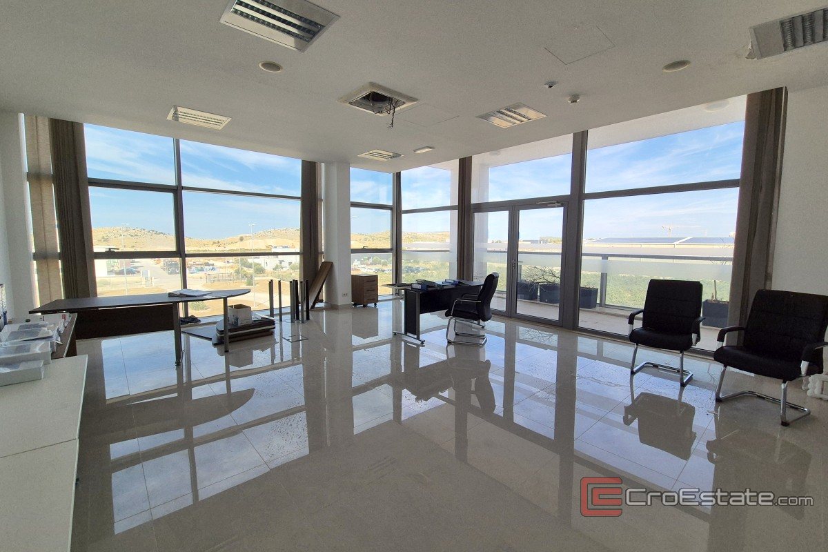 Uredski dio se prostire na tri etaže, a uključuje dio za recepciju, 9 odvojenih ureda sa kapacitetom za 50 zaposlenika, te pripadnim dodatnim sanitarnim čvorovima, svlačionicama sa tuševima, kuhinjom i sl. Uredski dio je povezan liftom i stepenicama.