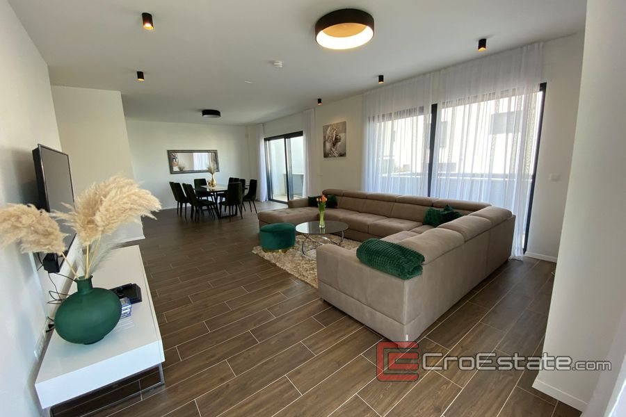 Vila ima natkriven i nenatkriven vanjski parking, garažu za tri ili više automobila, vešeraj i kotlovnicu u podrumu. Na prizemlju se nalaze kuhinja, blagovaonica, dnevna soba i zajednički wc. Sobe su prostrane i svijetle, s izlazom na dvorište i bazen. Na prvom katu se nalaze četiri sobe s vlastitom kupaonicom i walk-in ormarom, dok se na trećoj etaži nalazi apartman s kuhinjom, dnevnom sobom, kupaonicom i spavaćom sobom. Apartman ima izlaz na terasu s prekrasnim pogledom, na kojoj se nalaze instalacije za jacuzzi.
