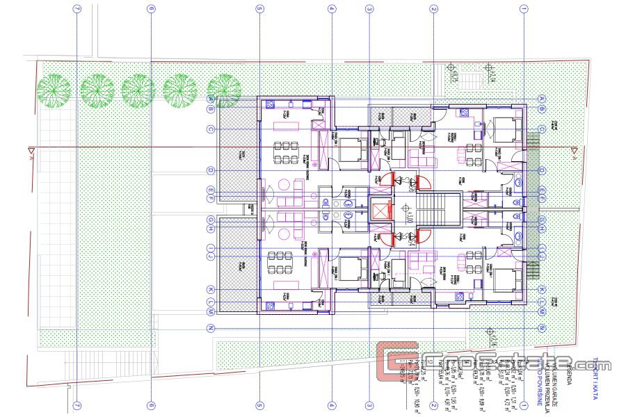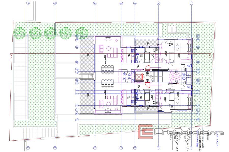 Radi se o jednosobnim i dvosobnim stanovima koji su kvadraturom u rasponu od 51 m2 do 202 m2. Sama zgrada je orijentacijom obuhvatila sve četiri strane svijeta. Prema idejnom projektu postoje dvije varijante prizemlja, te budući vlasnik ima mogućnost biranja varijente, dok je prvi kat zamišljen da se sastoji od četiri stana.