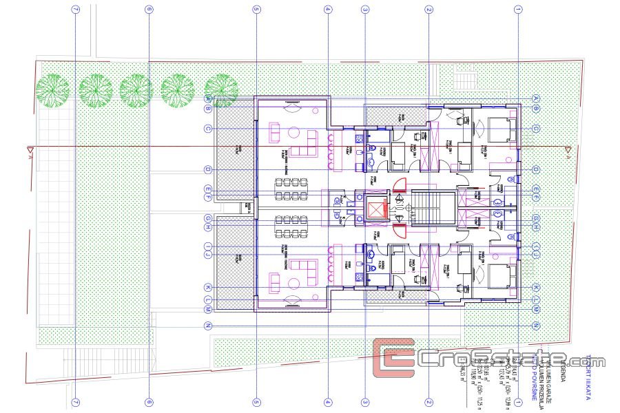 Radi se o stanovima pozicioniranim na prizemlju i prvom katu. Stanovi iznimne kvalitete gradnje, projektirani od renomiranog hrvatskog arhitekta koji je pazio na svaki detalj. Uz kupnju stana postoji mogućnost kupnje podzemnog garažnog mjesta.