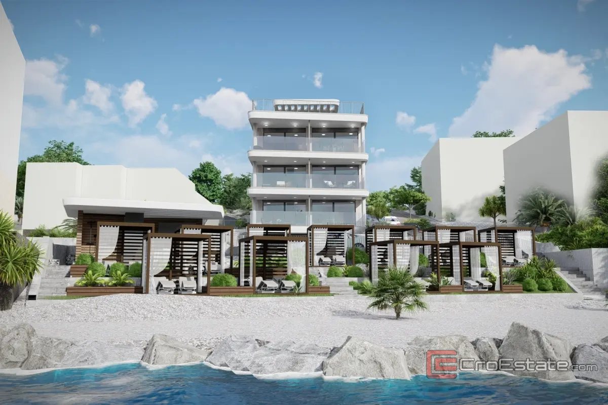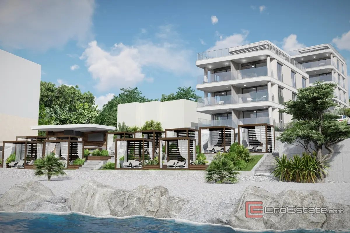 Ono što ovu nekretninu čini posebno atraktivnom jest neposredna blizina mora - plaža se nalazi odmah ispod objekta, a budući vlasnici imaju mogućnost kupnje privatnih ležaljki, što osigurava dodatnu razinu komfora i ekskluzivnosti. Uz to, moguće je odabrati vanjsko parkirno mjesto ili garažno parkirno mjesto u podrumu, uz nadoplatu.