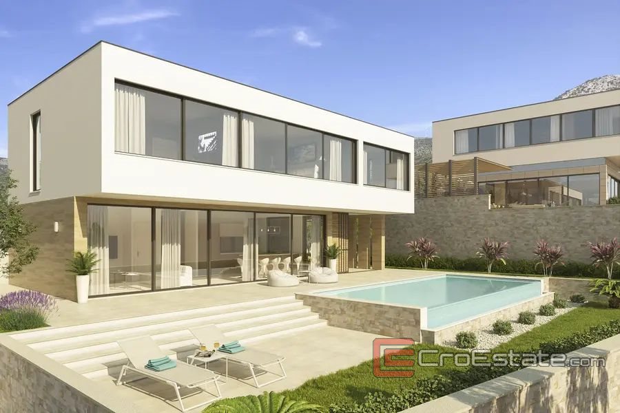 ila s bazenom i pogledom na more smještena u blizini grada Trogira, na 550m udaljenosti od mora.