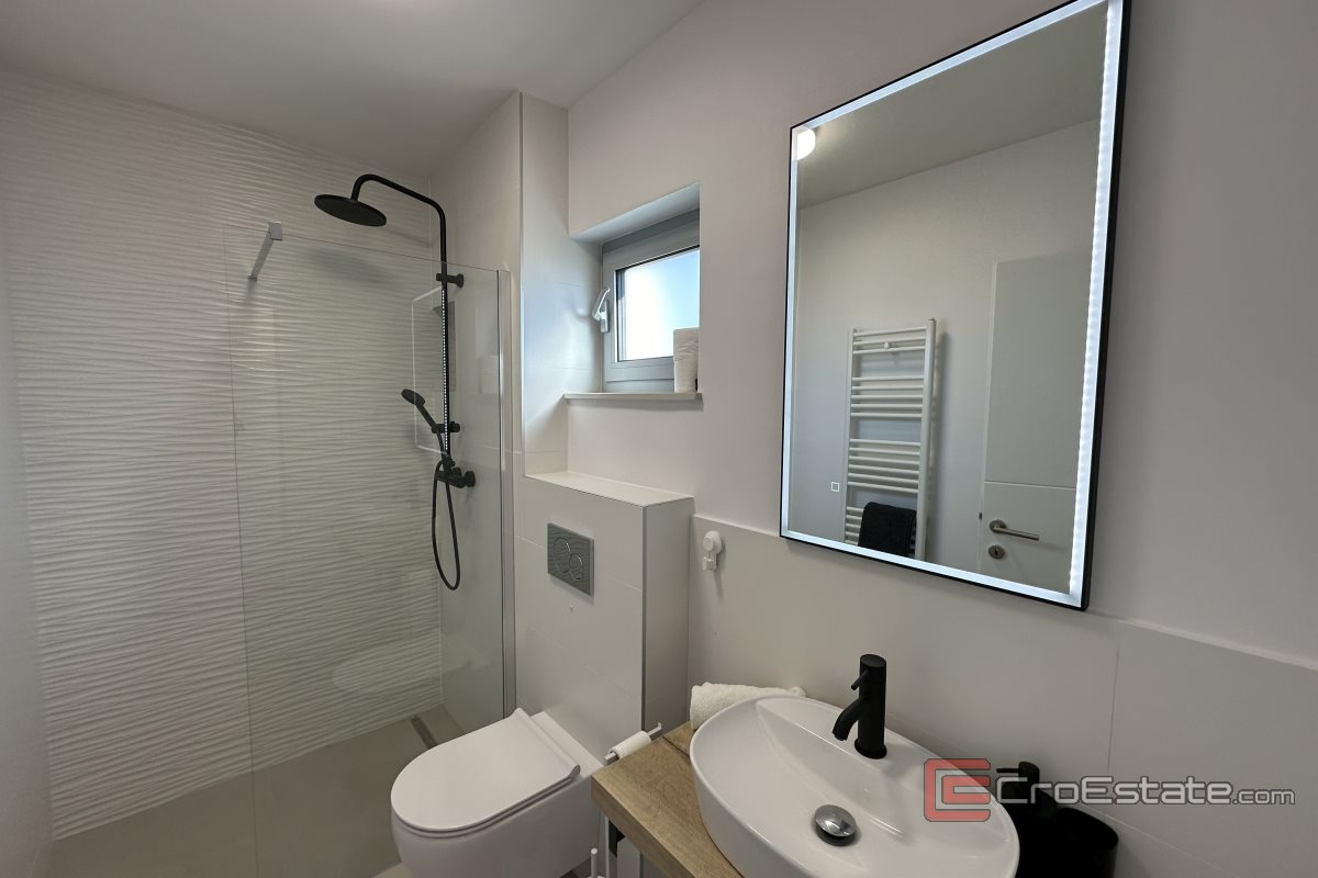 Apartmanu ukupne površine 105m2 posebnosti su jedinstvena lokacija i pažljiv dizajn koji će zadovoljiti sve zahtjeve kupaca. Unutar stana se nalazi zajednička kupaonica, vrlo prostran dnevni boravak i blagovaonica, kuhinja, te loggia s koje se pruža prekrasan pogled na more. Na krovnoj terasi nalaze se jacuzzi i sauna, što ovaj apartman čini idealnim za obiteljsko opuštanje ili turističke svrhe.