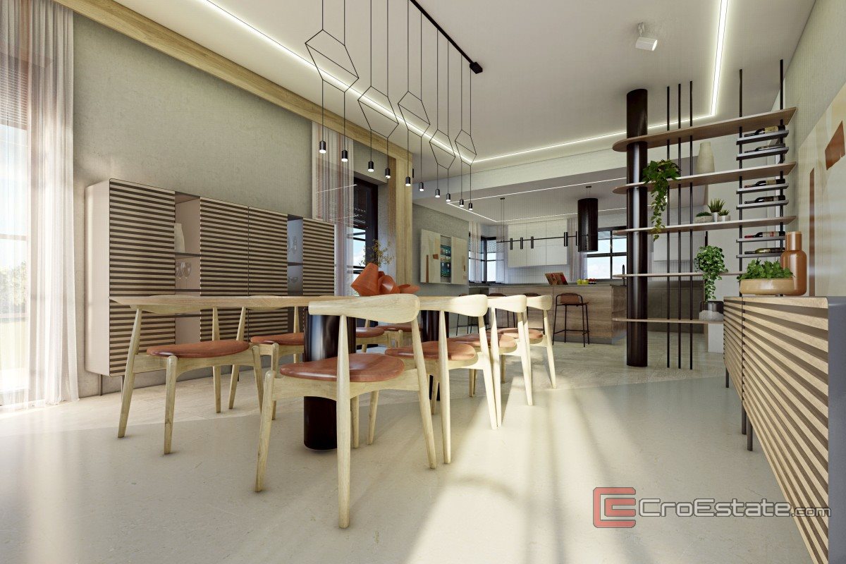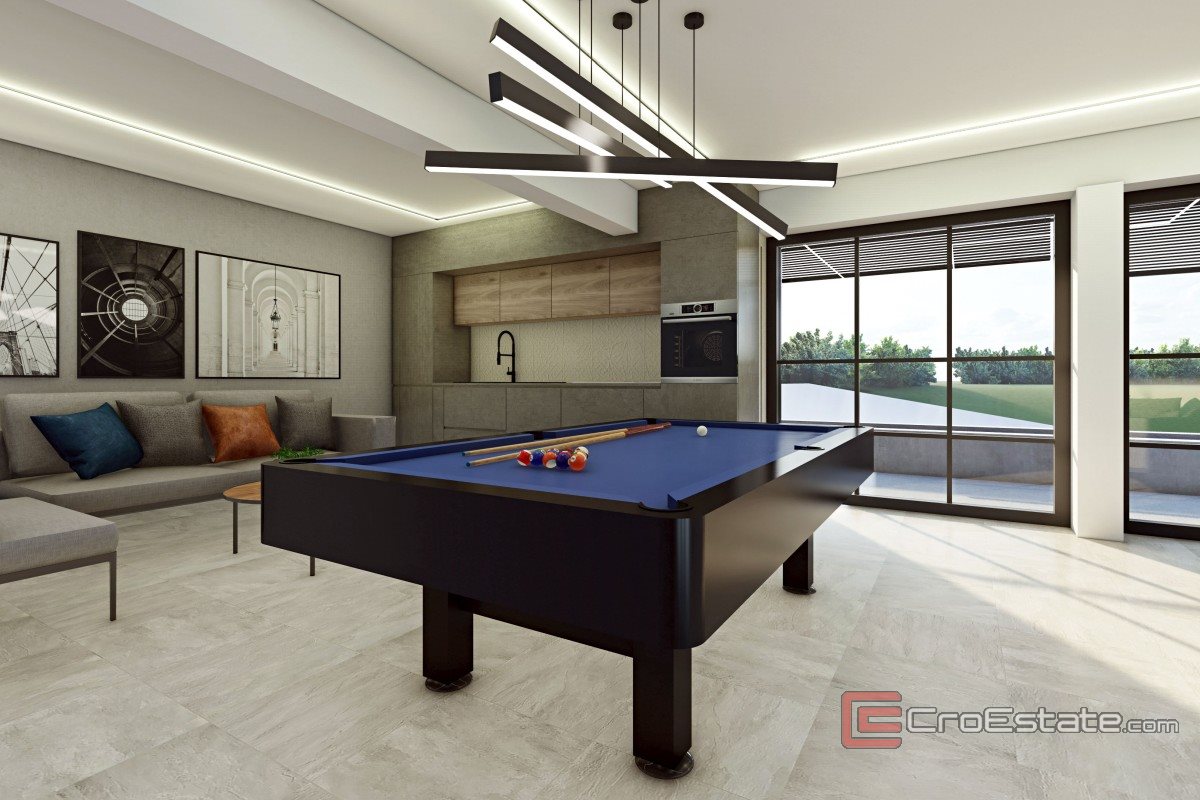 Ova moderna vila smještena je na prostranoj parceli površine 1239 m², s ukupnom bruto površinom od 557 m² raspoređenom na tri etaže. Nalazi se na rubu Parka prirode Medvednica, u mirnom okruženju koje pruža privatnost i panoramski pogled. Nekretnina se prodaje u roh bau fazi, a projektom su predviđeni sadržaji poput unutarnjeg bazena, saune, dizala, ljetne kuhinje i velikih terasa. Koncept je osmišljen tako da omogućuje izvedbu luksuzne obiteljske vile uz mogućnost prilagodbe budućem vlasniku. Prostorni raspored uključuje garažu s dodatnim parkirnim mjestima, tehničke prostorije, wellness zonu, dnevni boravak s kuhinjom i blagovaonicom, radnu sobu, više spavaćih soba s kupaonicama te prostrane terase. Vila je projektirana prema visokim standardima energetske učinkovitosti, uz podno grijanje s dizalicom topline, planiranu solarnu elektranu, kvalitetnu izolaciju i pripremu za punjenje električnih vozila. Schindler dizalo je već naručeno i uključeno u cijenu.