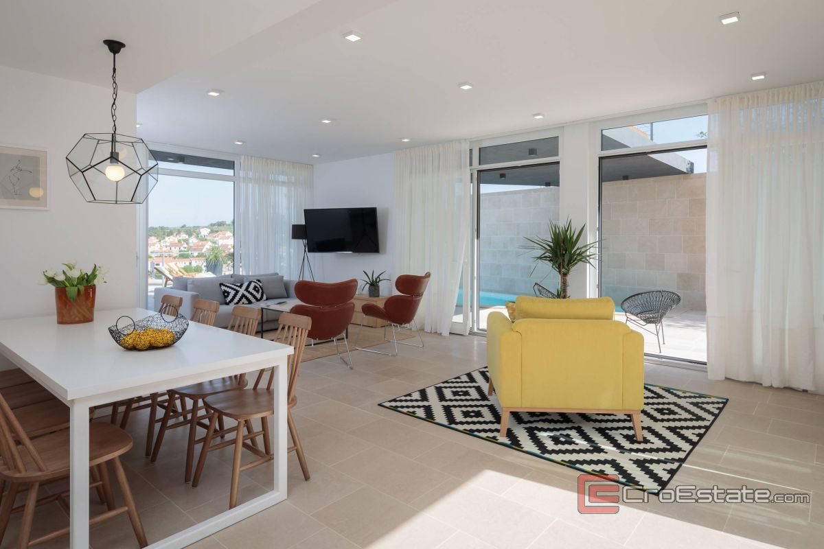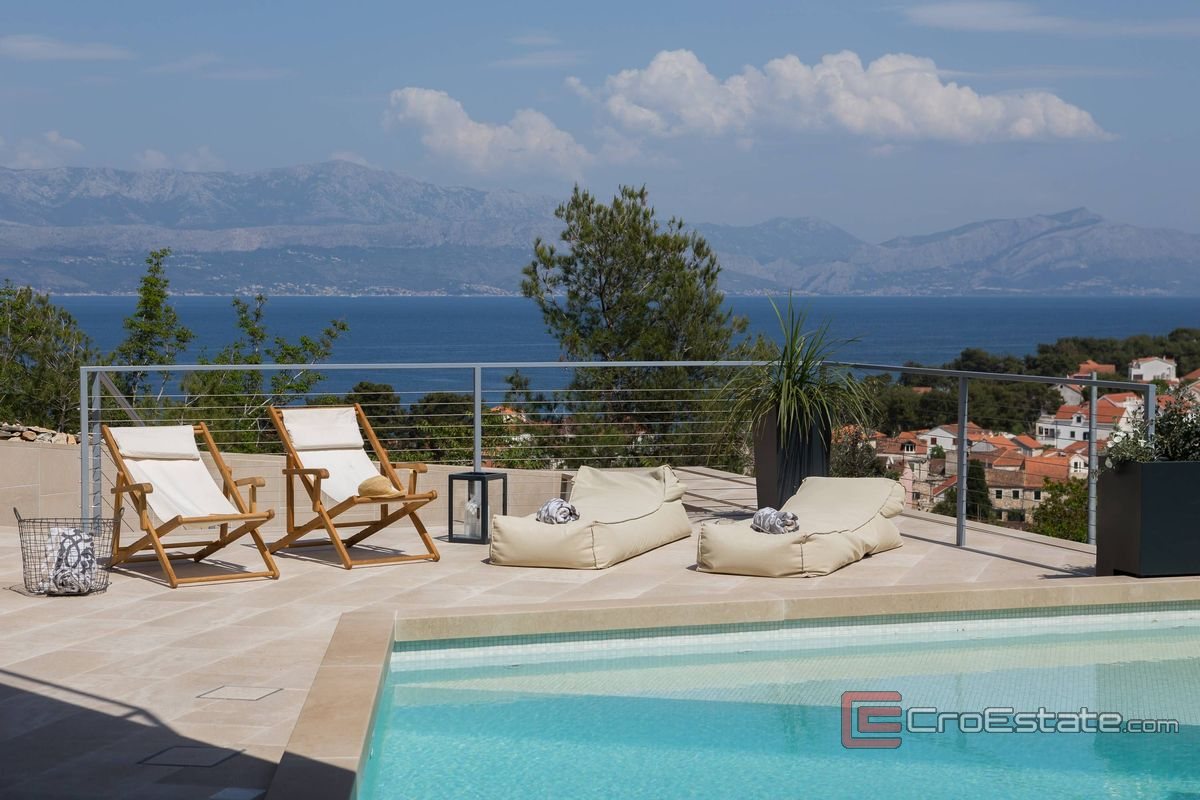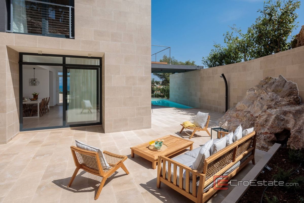En ekstraordinær eiendom til salgs med topp beliggenhet. Denne moderne, nybygde steinvillaen med vakker utsikt og svømmebasseng ligger på øya Brač i en rolig fiskerlandsby.
