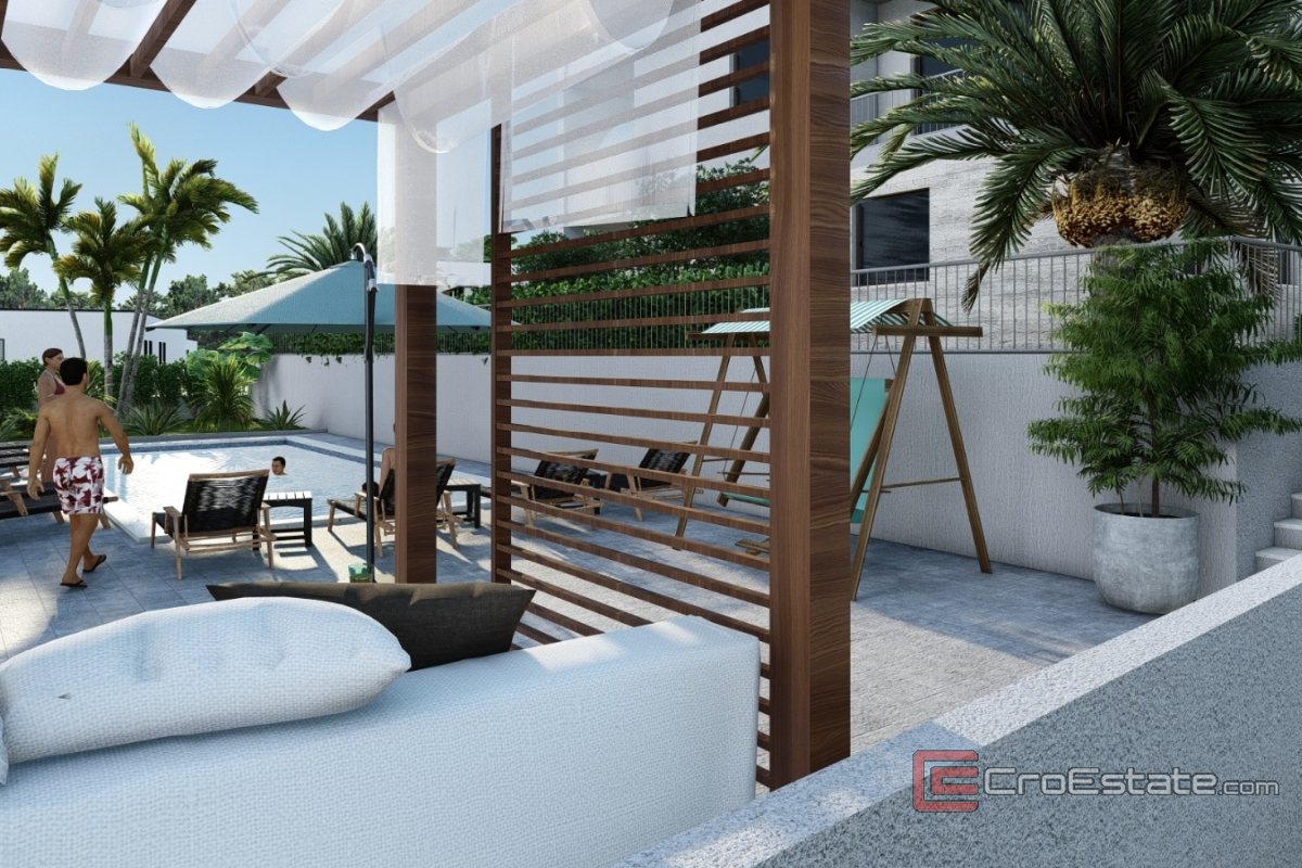 En moderne og elegant leilighet i et nytt boligbygg på øya Čiovo, perfekt beliggende bare noen skritt fra det glitrende Adriaterhavet.