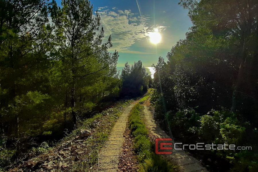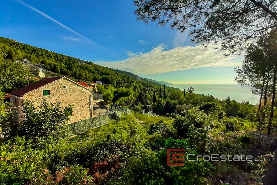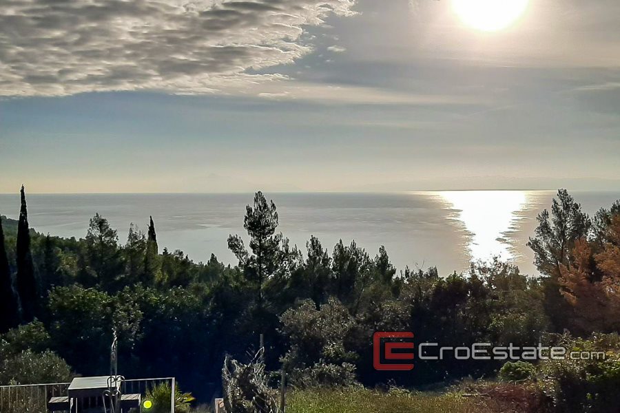 Byggegrunn, til salgs, ligger i en liten landsby på sørsiden av øya Hvar, med utsikt over havet.
