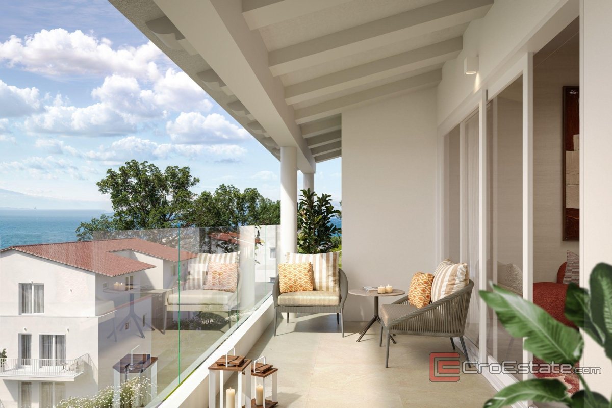 Novi Vinodolski - Toppleilighet med tre terrasser på toppen av bygningen i andre rad mot havet
