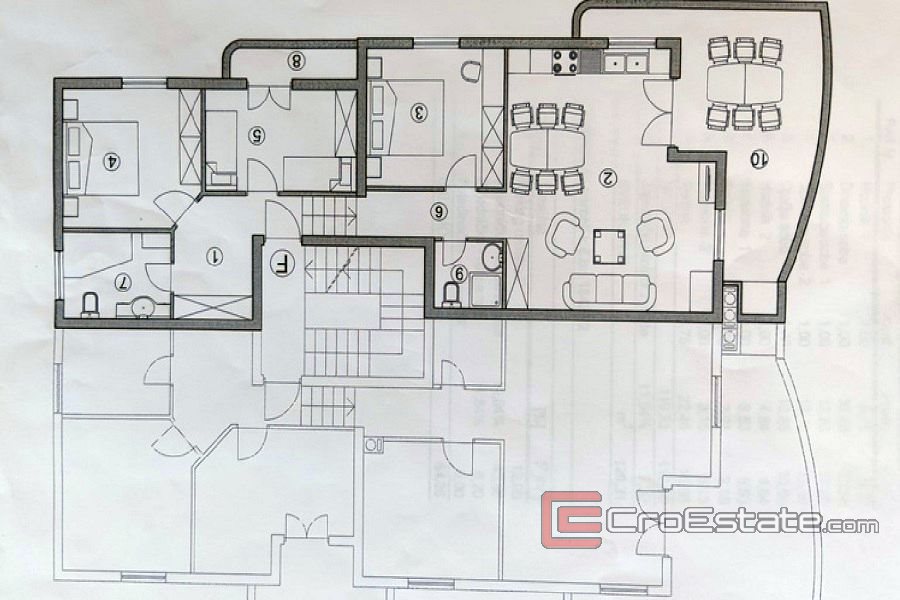 Det er en treroms leilighet med stor terrasse og utsikt over havet