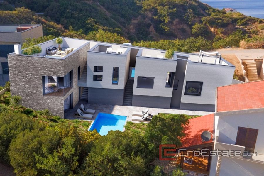 Nybygd villa med basseng og havutsikt beliggende i en rolig beliggenhet, 200 m fra sjøen.