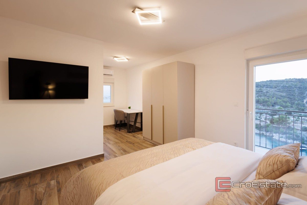En stor villa på fire etasjer ligger i et rolig område nær Rogoznica, bare tretti meter fra havet.