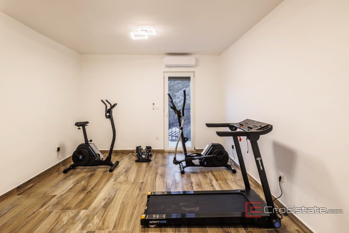 I andre etasje er det et treningsrom, to ekstra soverom og et rom beregnet for å sette opp en badstue. Tredje etasje er reservert for en komfortabel stue, som er forbundet med kjøkken og spisestue, og åpner ut mot en romslig terrasse med utsikt over havet og den omkringliggende bukten.