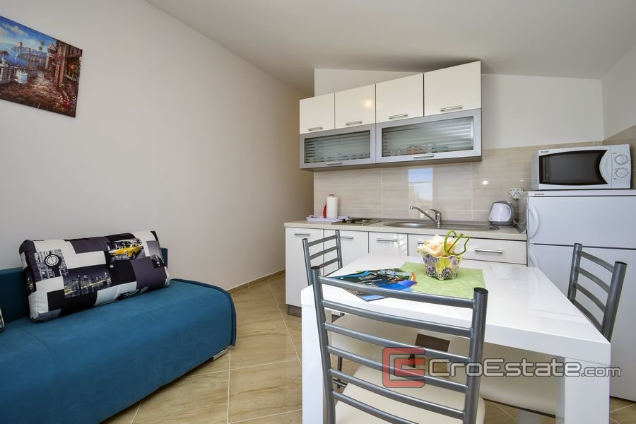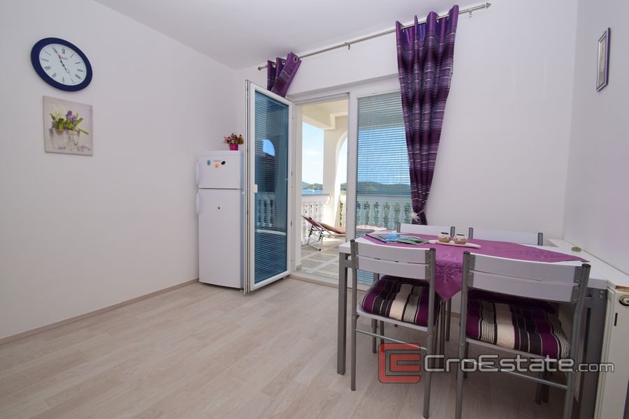 Et to-etasjers hus med totalt seks leiligheter er til salgs, plassert i første rad til sjøen, nær Šibenik og Vodice.