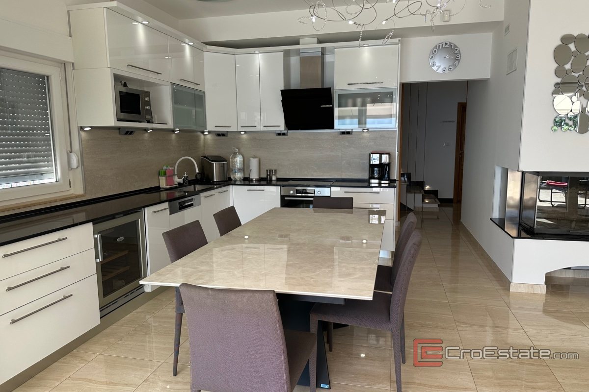 Den består av solrik stue med peis, stort kjøkken og spisestue, fire soverom med hvert sitt bad, toalett, velværerom med badstue og treningssenter. Den vakkert dekorerte terrassen er tilgjengelig fra stuen.