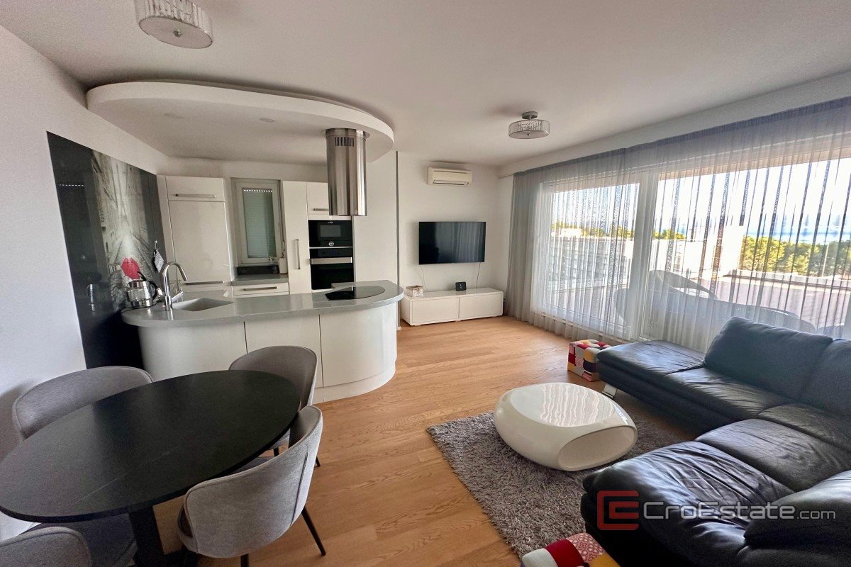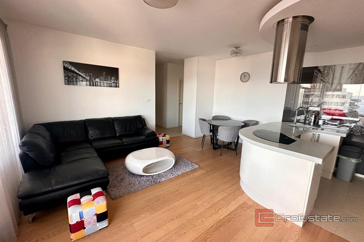 Til leie, en vakker toroms leilighet beliggende i en nybygd bygning, som ligger i Žnjan. Eiendommen utstråler moderne design, privatliv og fred, noe som gjør den til en ideell eiendom for hverdagslivet. Eiendommen har også to garasjeparkeringsplasser, noe som bidrar til komforten under oppholdet.
