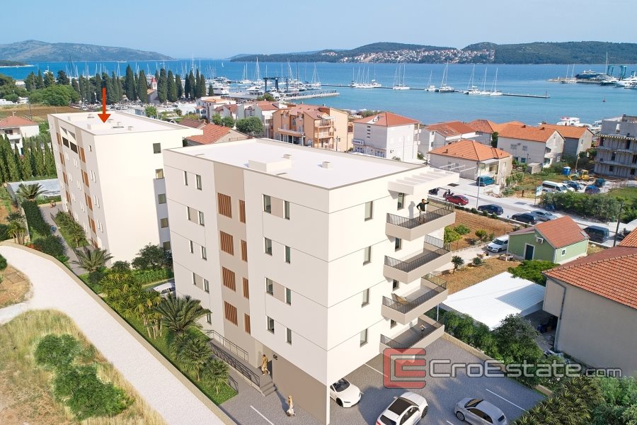 Til salgs er moderne leiligheter under bygging med havutsikt i Trogir. De ligger kun 15 minutters gange fra sentrum av Trogir og alle fasiliteter i byen. Leilighetene har sydlig orientering og ligger i et bolighus med kjeller og 5 etasjer med seks leiligheter i hver etasje.