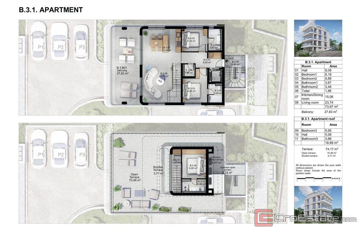 Det som gjør denne eiendommen spesielt attraktiv er den umiddelbare nærheten til havet – stranden ligger rett nedenfor bygningen, og fremtidige eiere har muligheten til å kjøpe private solstoler, noe som gir et ekstra nivå av komfort og eksklusivitet. I tillegg er det mulig å velge en utendørs parkeringsplass eller en garasjeplass i kjelleren, mot et tillegg i prisen.